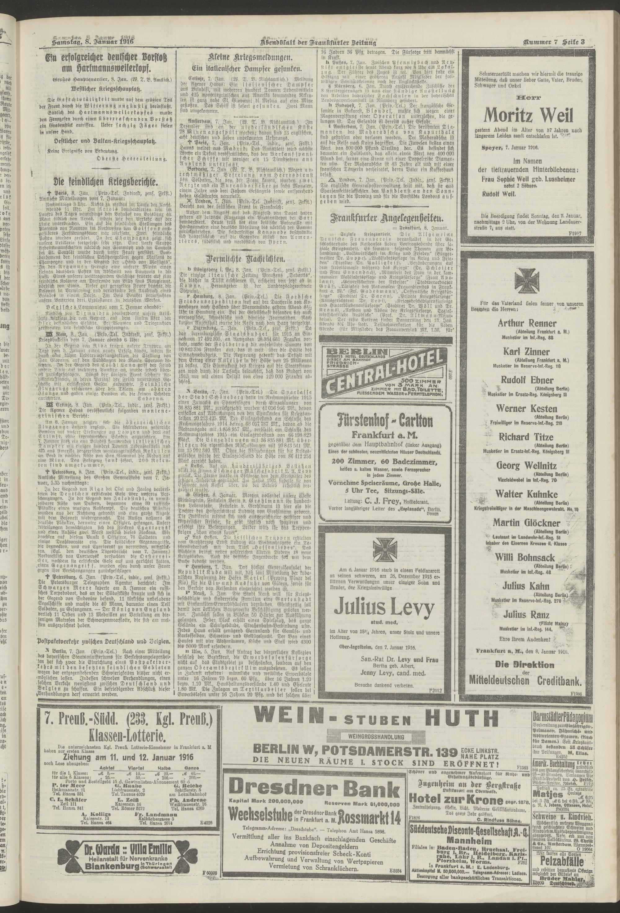 08.01.1916 = Nr. 7. Abendblatt