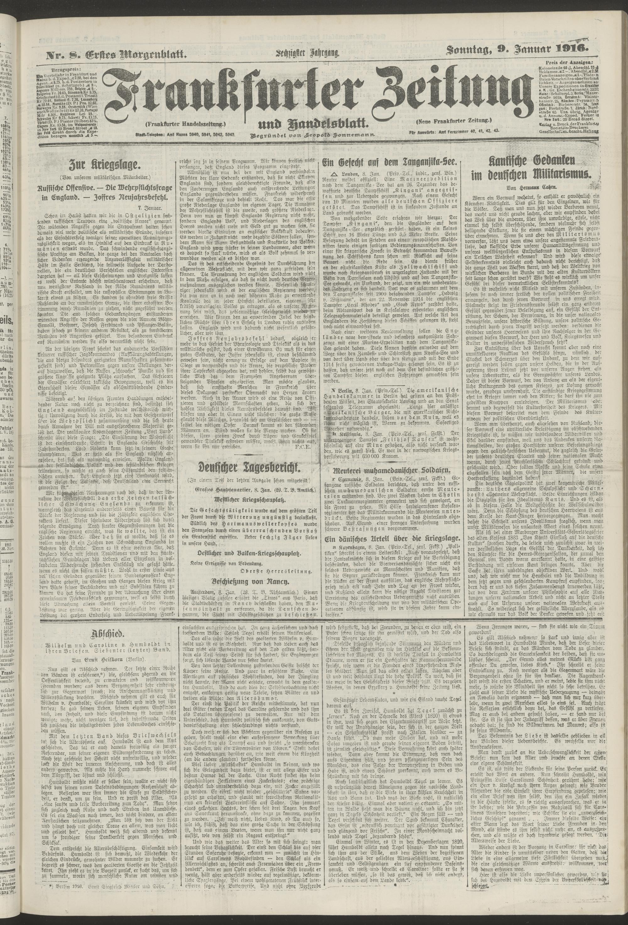 09.01.1916 = Nr. 8. Erstes Morgenblatt