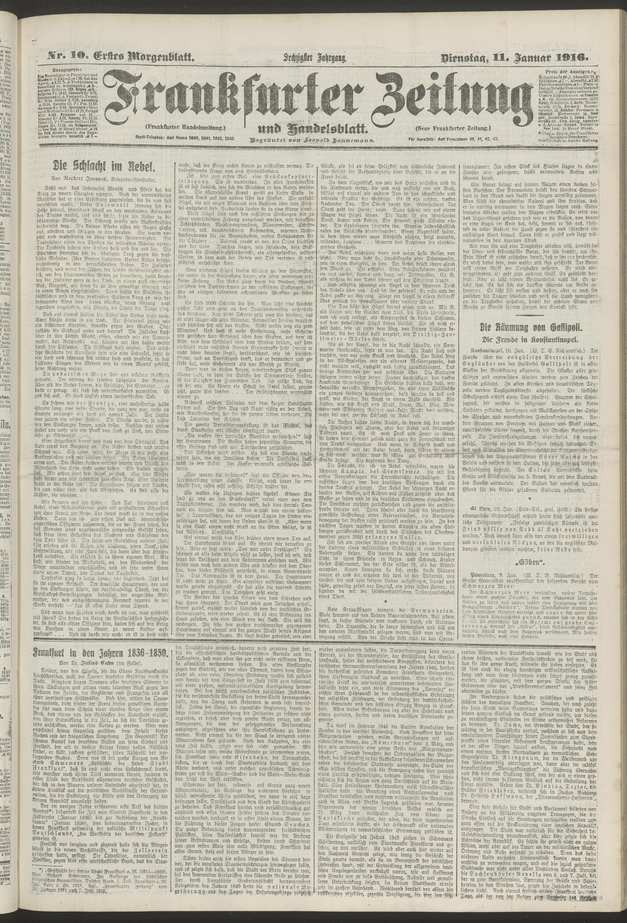 11.01.1916 = Nr. 10. Erstes Morgenblatt