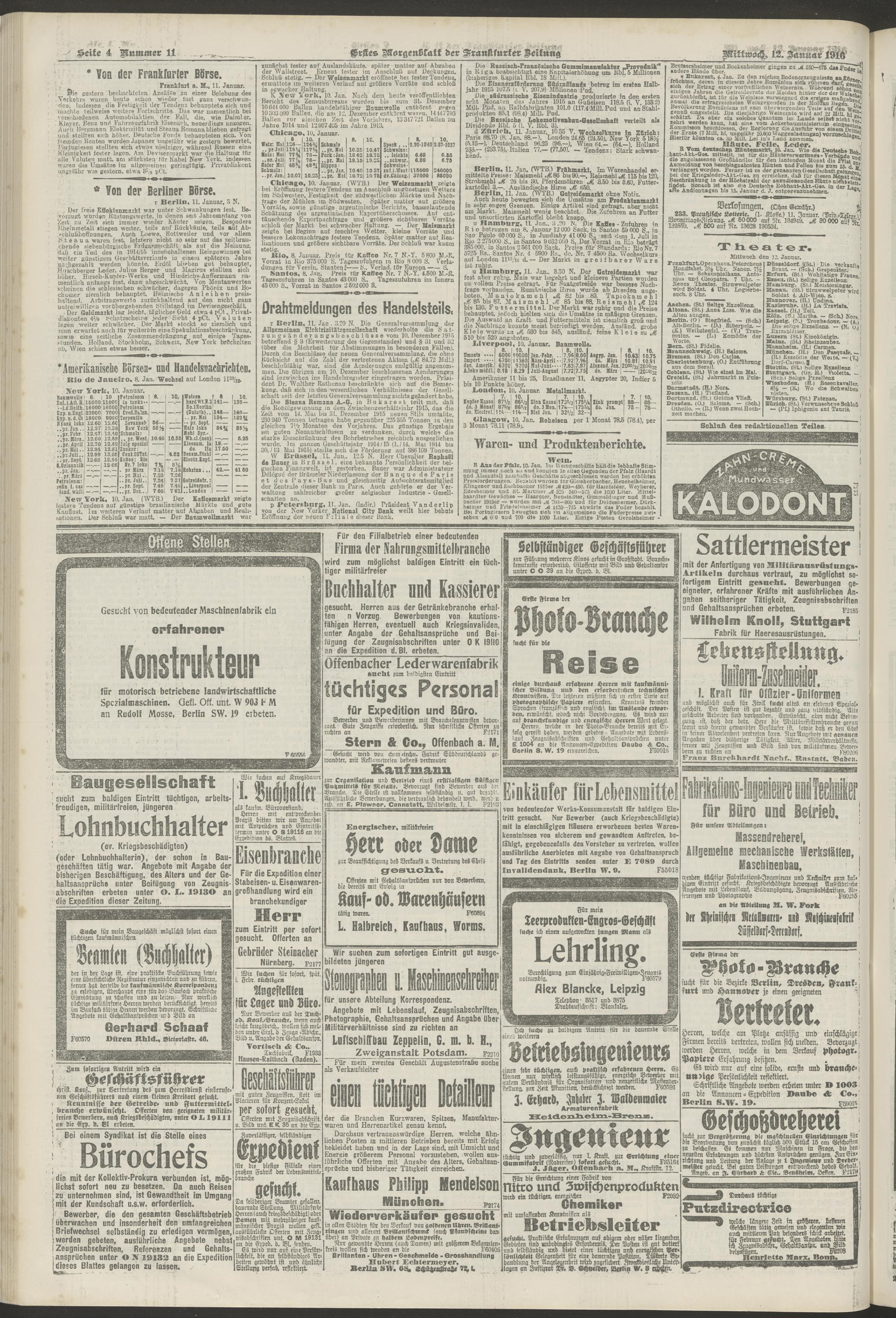 12.01.1916 = Nr. 11. Erstes Morgenblatt