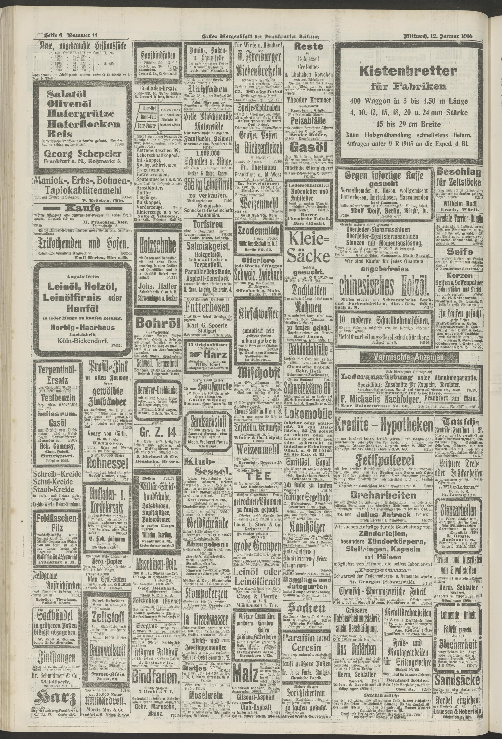 12.01.1916 = Nr. 11. Erstes Morgenblatt