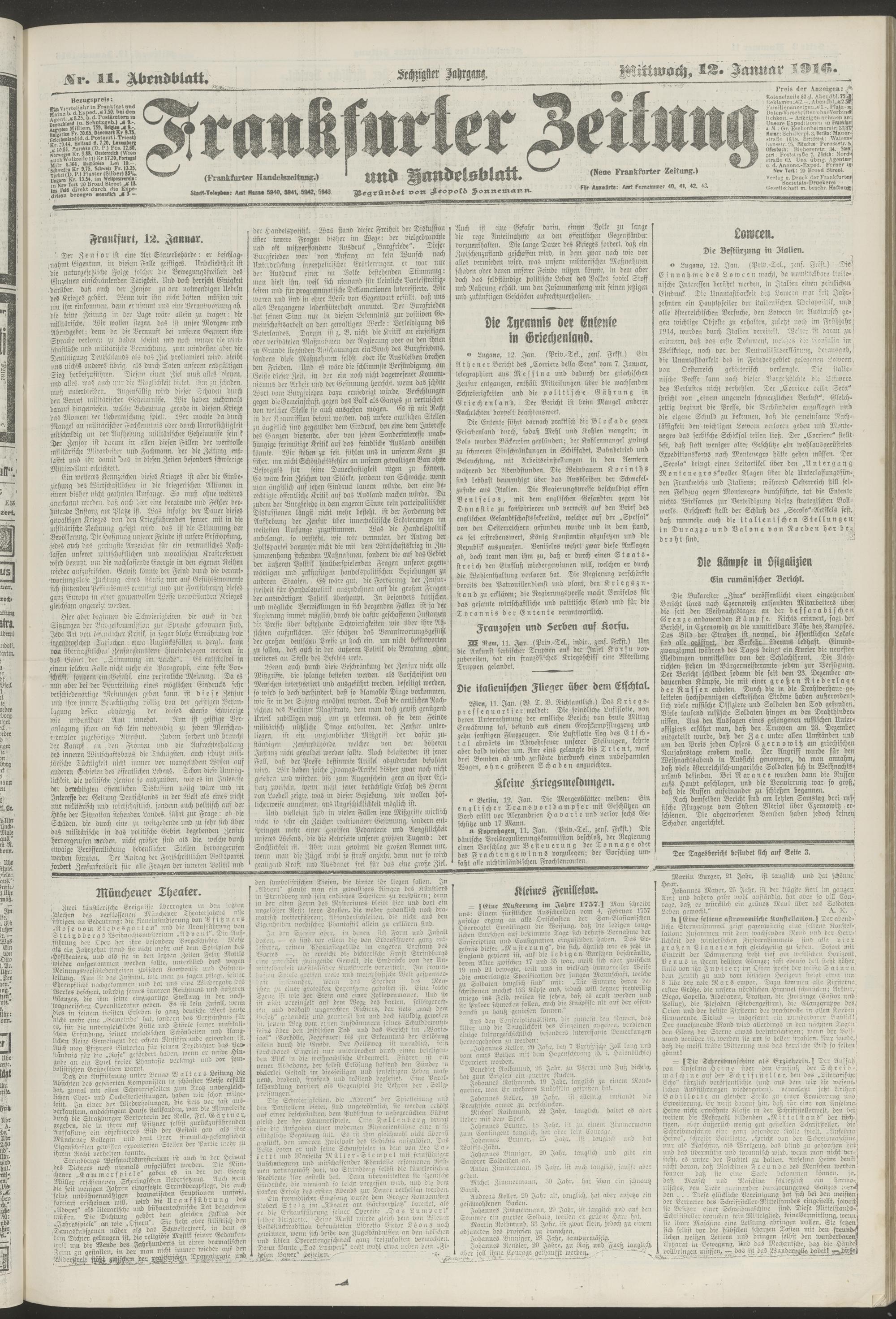 12.01.1916 = Nr. 11. Abendblatt