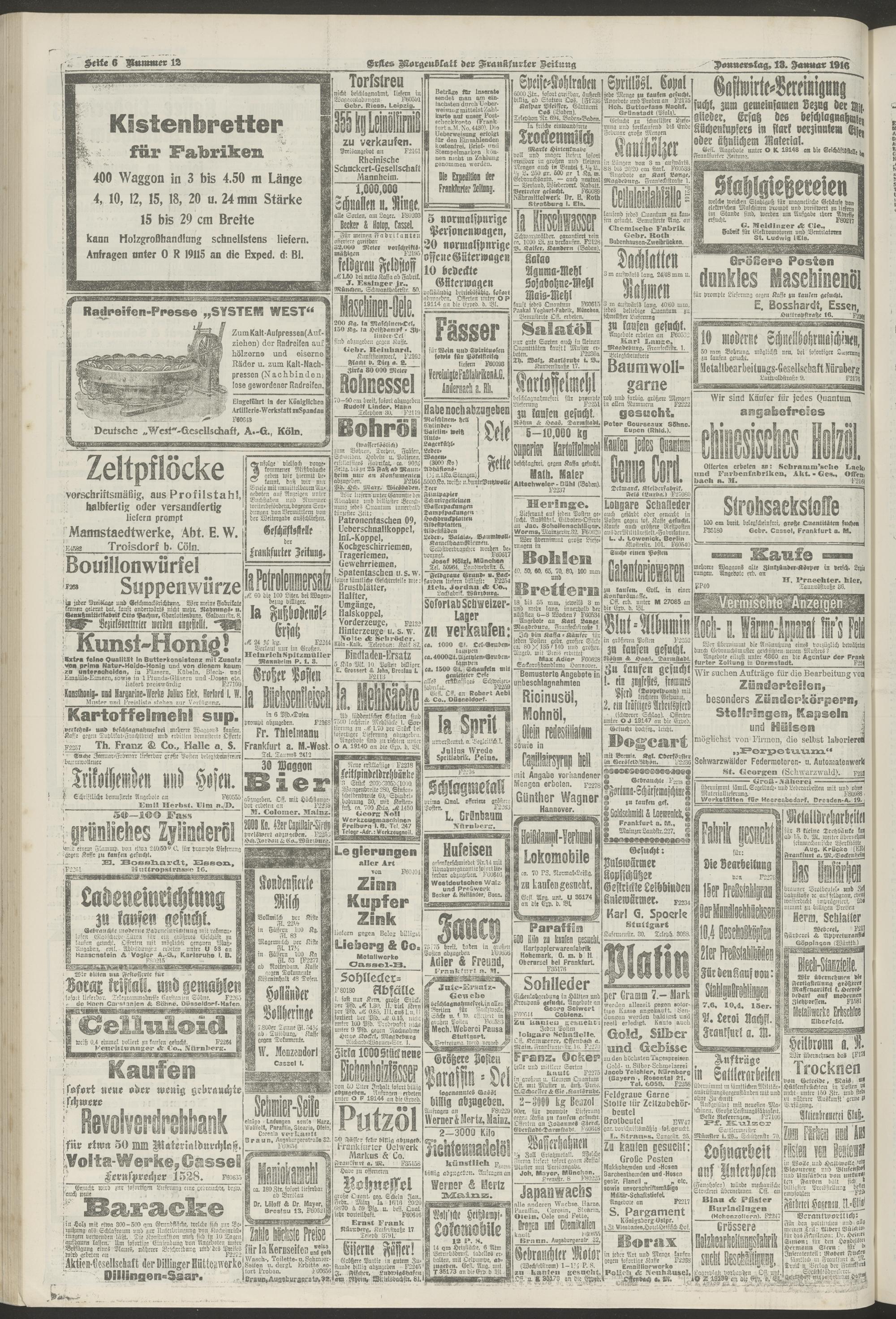 13.01.1916 = Nr. 12. Erstes Morgenblatt