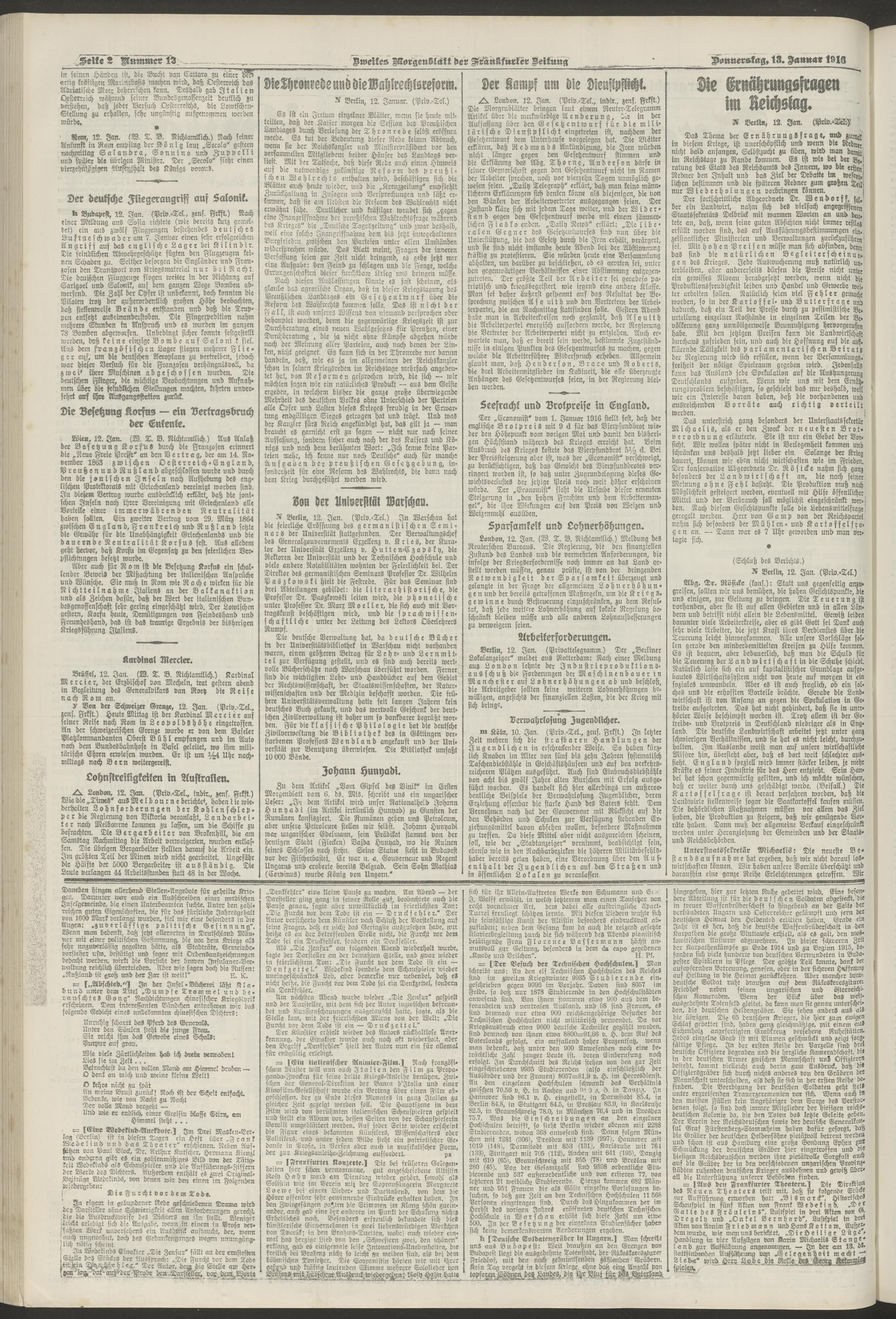 13.01.1916 = Nr. 12. Zweites Morgenblatt
