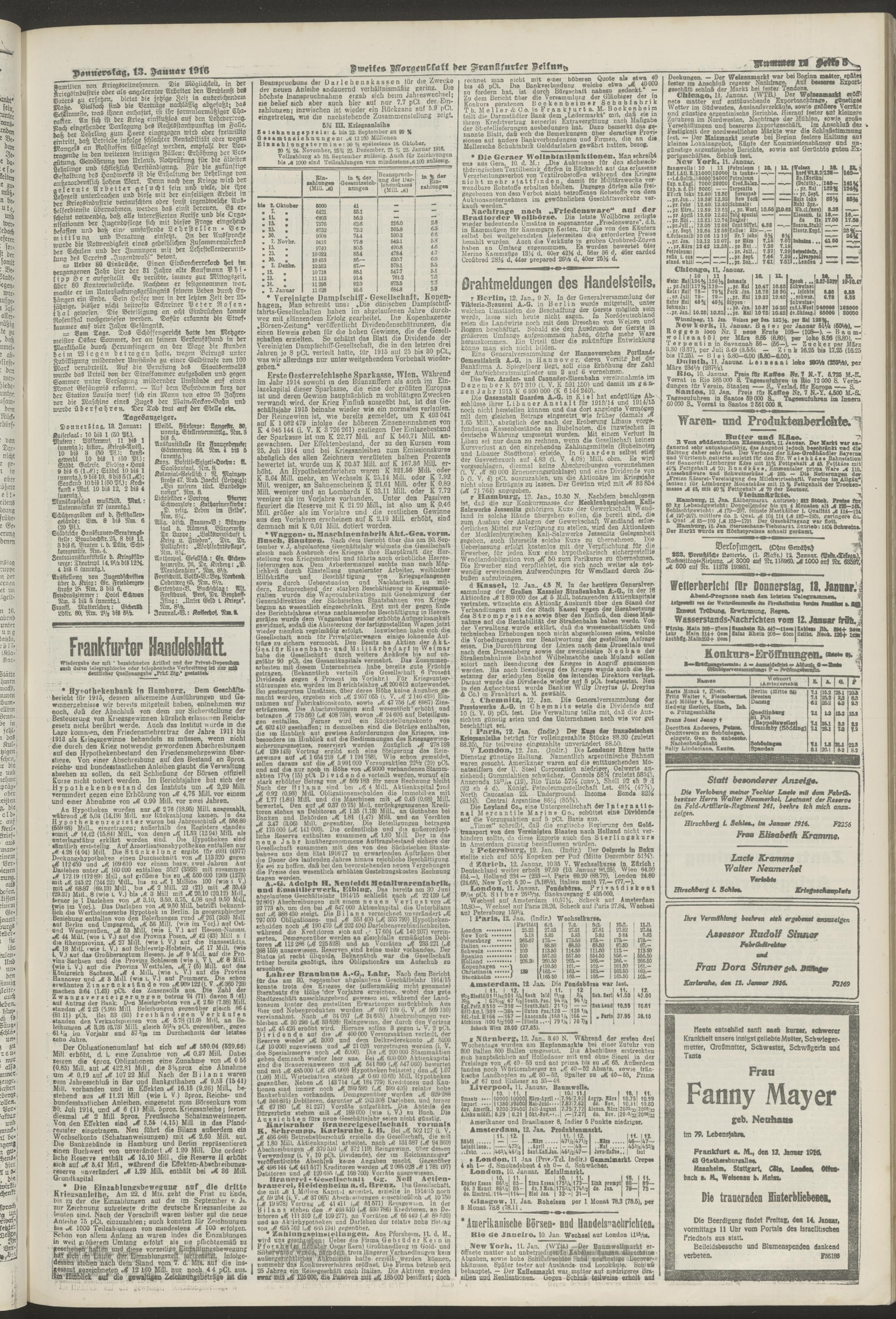 13.01.1916 = Nr. 12. Zweites Morgenblatt