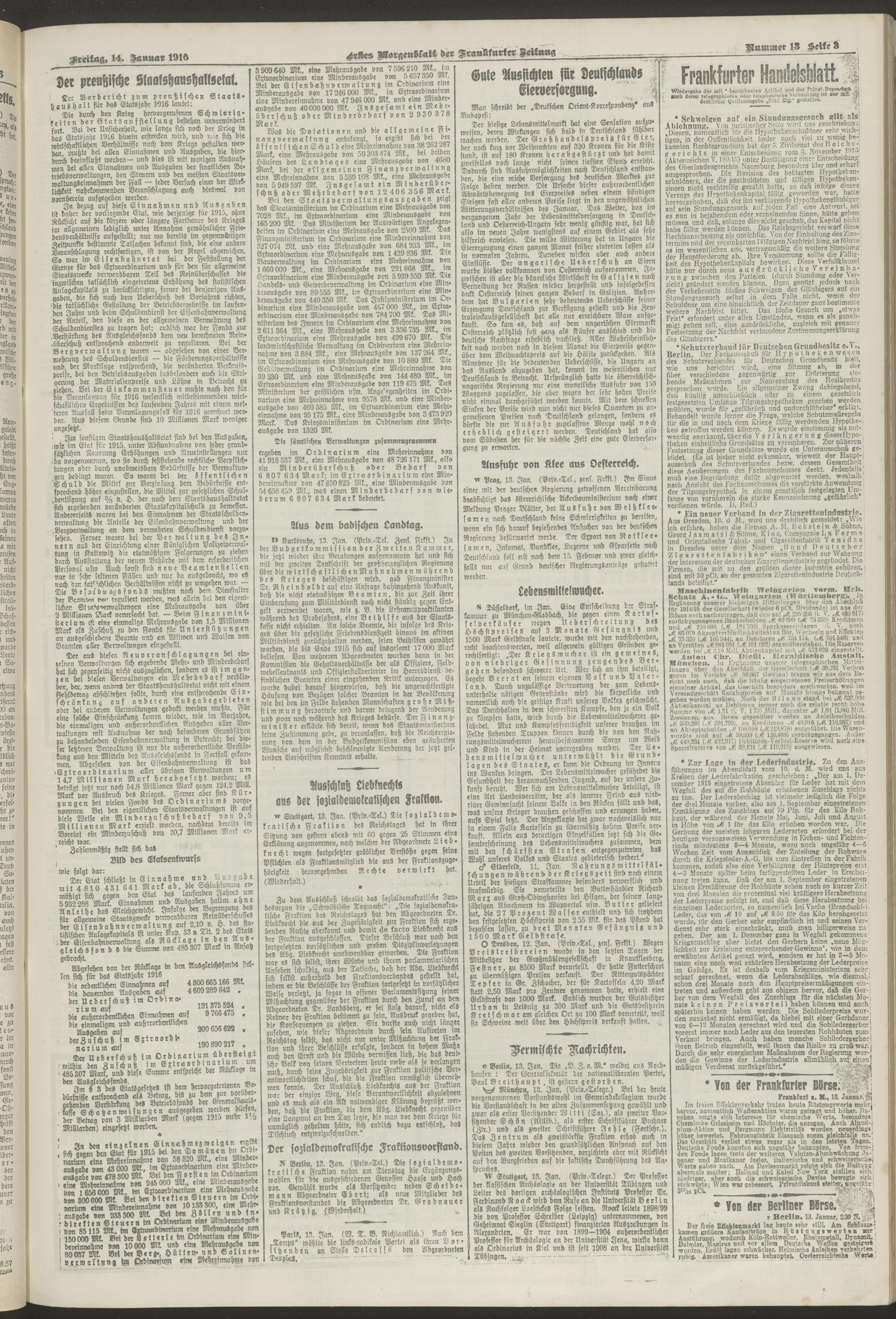 14.01.1916 = Nr. 13. Erstes Morgenblatt
