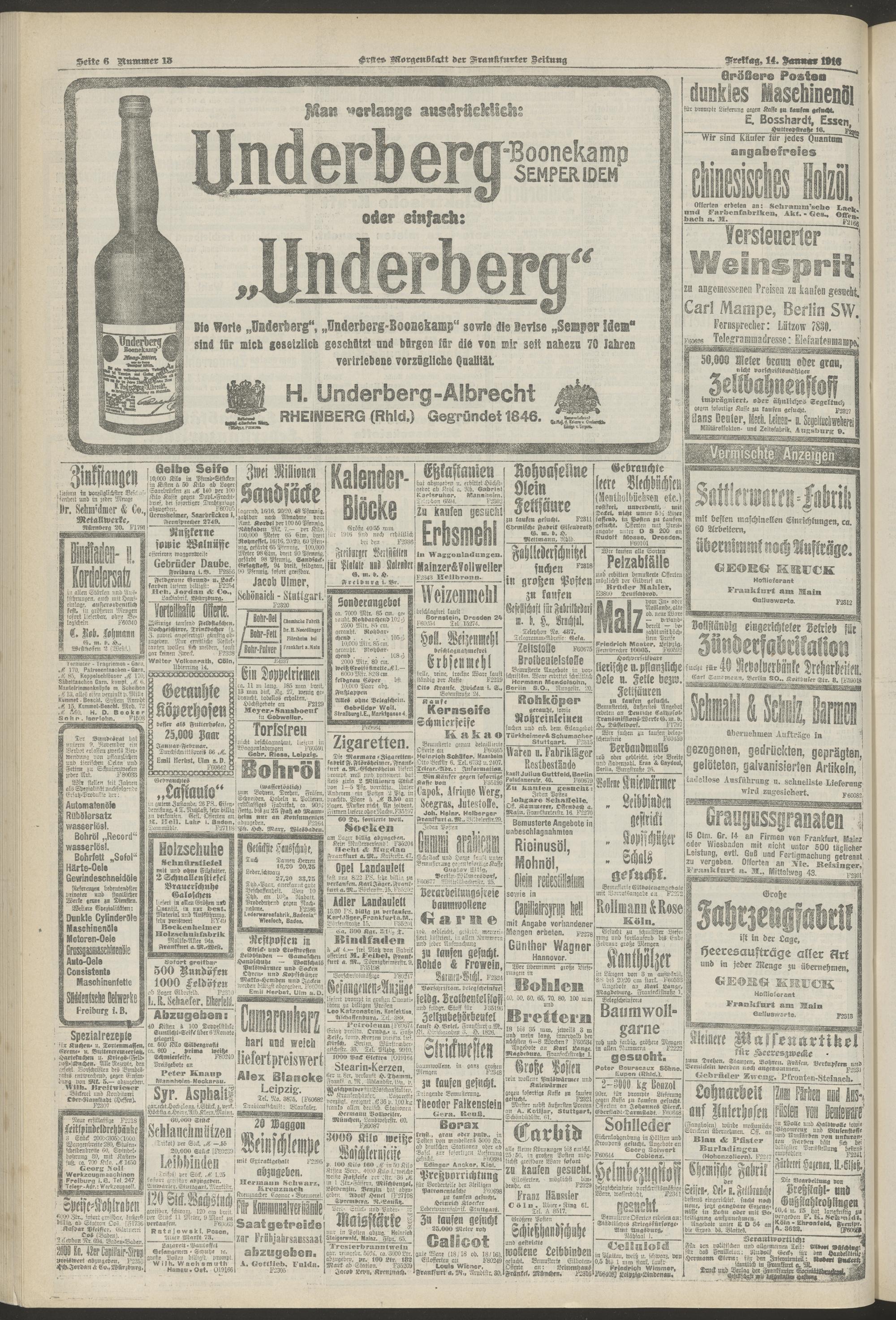 14.01.1916 = Nr. 13. Erstes Morgenblatt