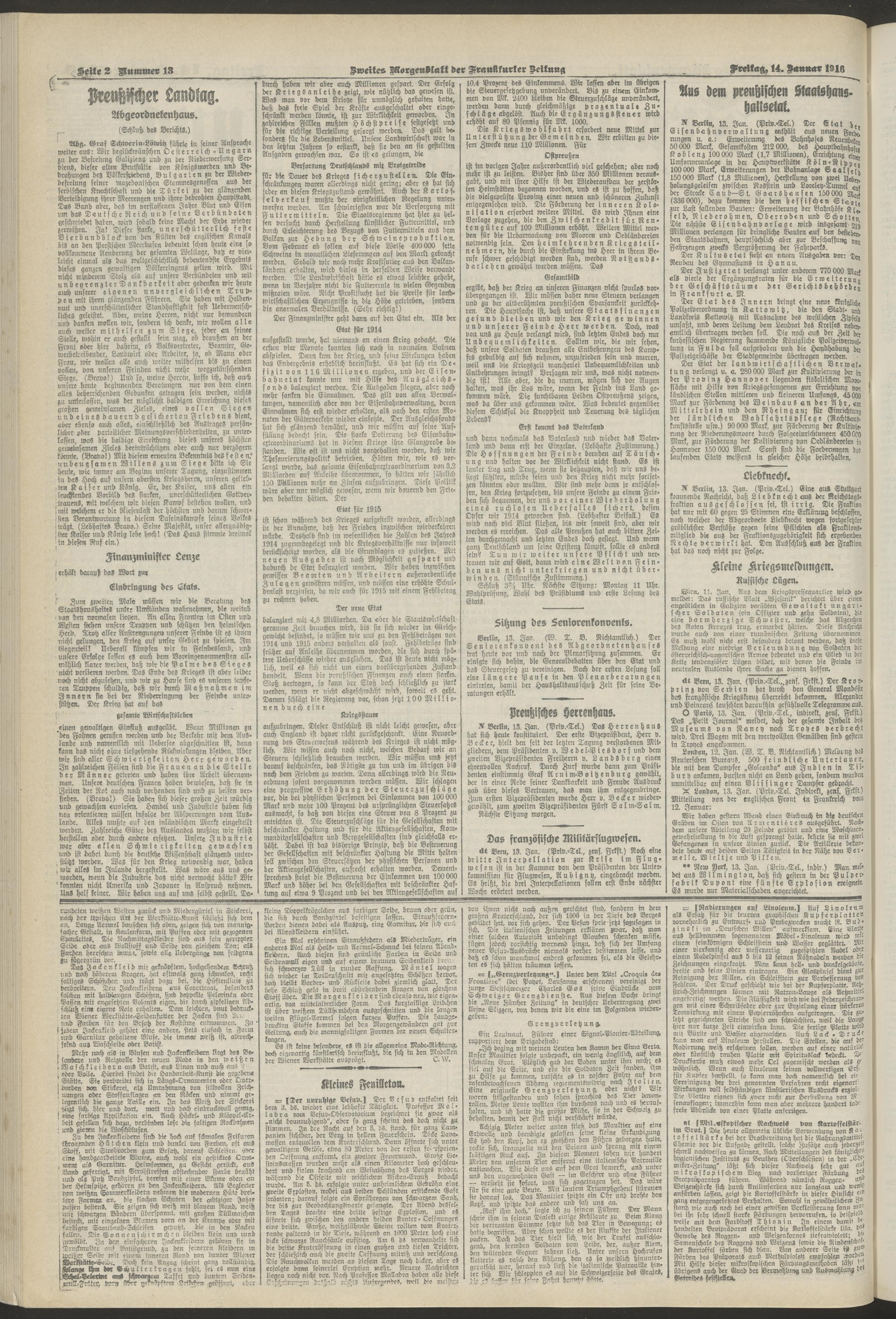 14.01.1916 = Nr. 13. Zweites Morgenblatt