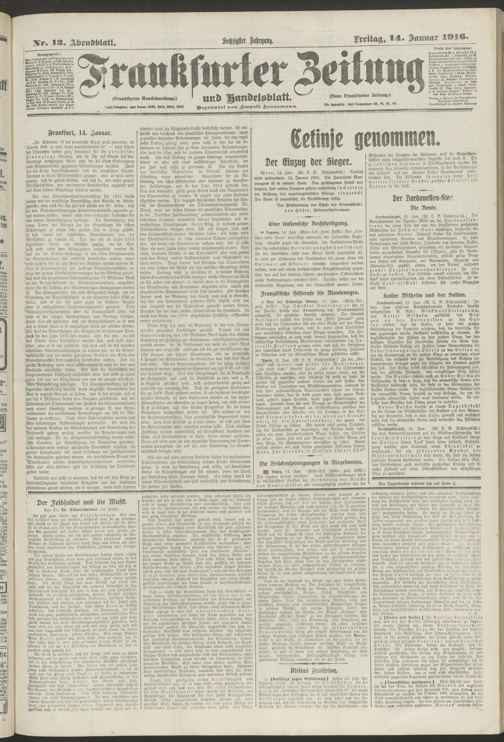 14.01.1916 = Nr. 13. Abendblatt