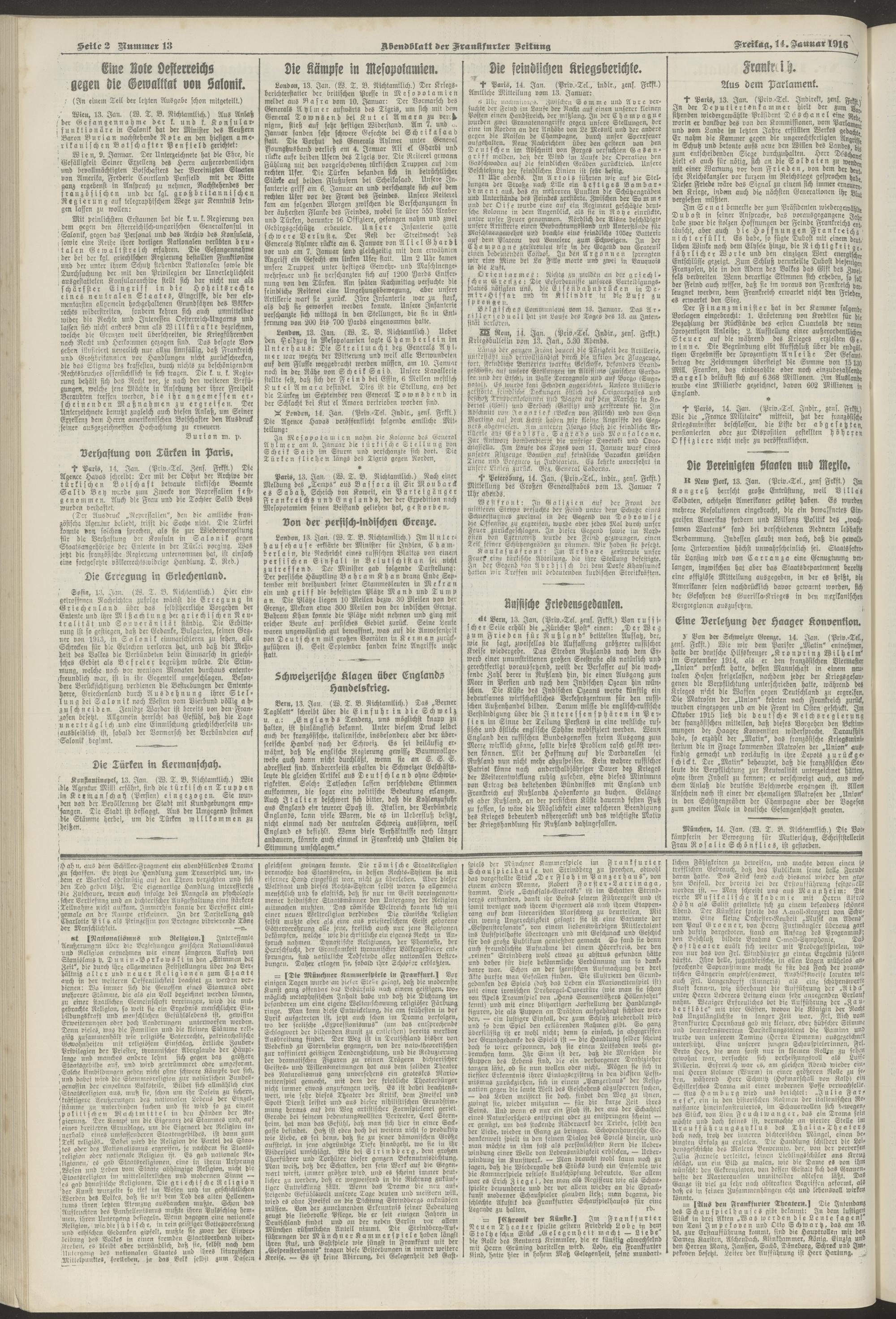 14.01.1916 = Nr. 13. Abendblatt
