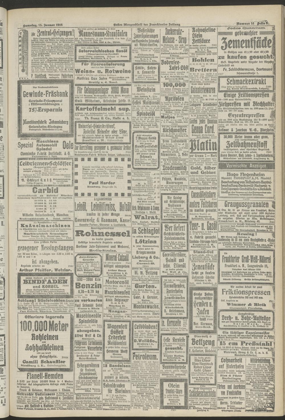 15.01.1916 = Nr. 14. Erstes Morgenblatt