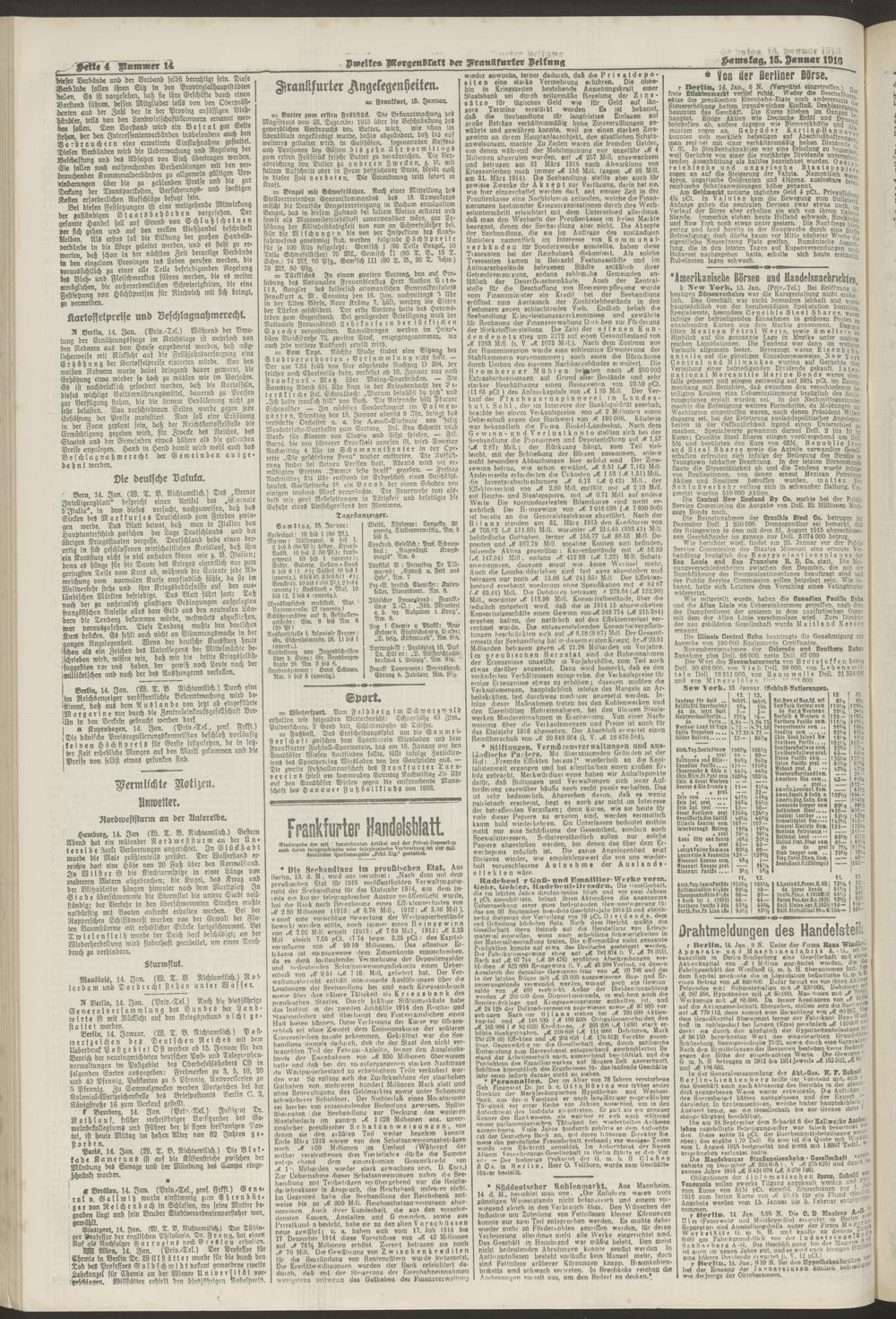 15.01.1916 = Nr. 14. Zweites Morgenblatt