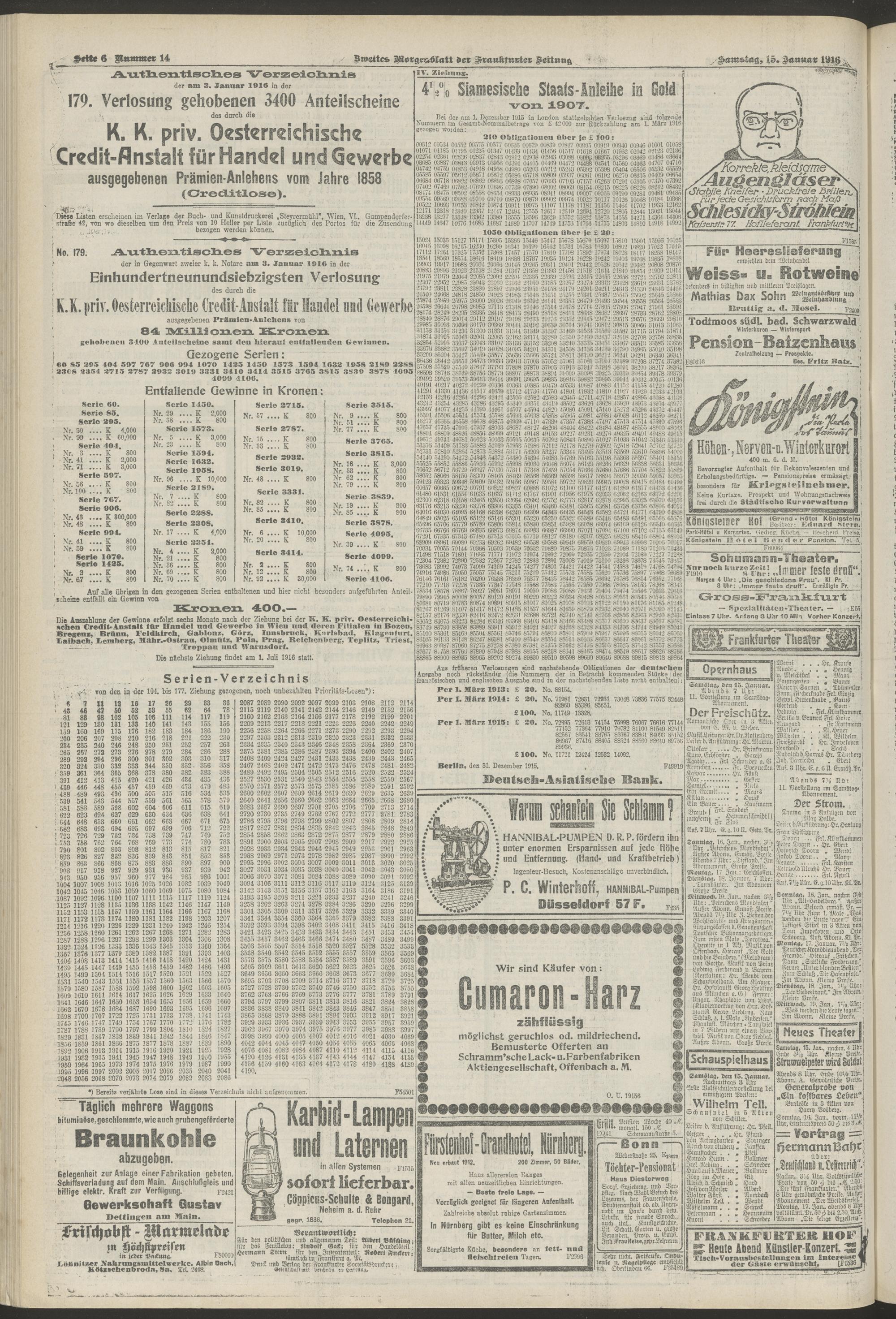 15.01.1916 = Nr. 14. Zweites Morgenblatt