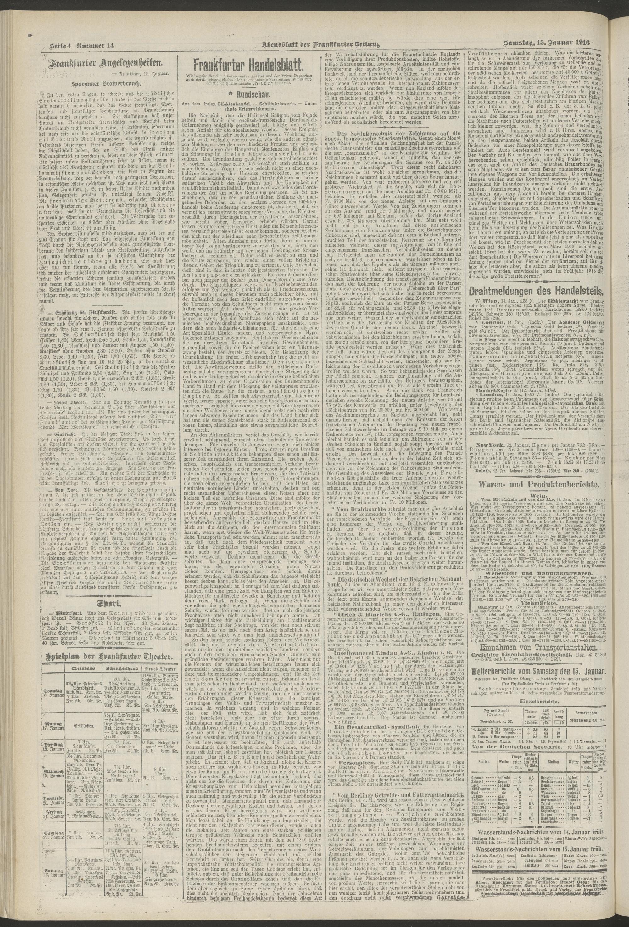 15.01.1916 = Nr. 14. Abendblatt