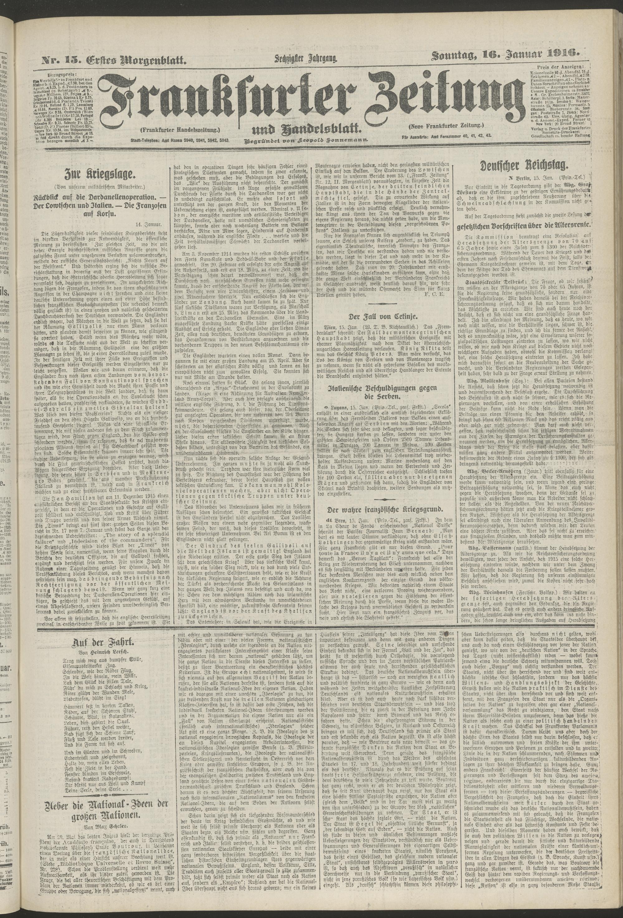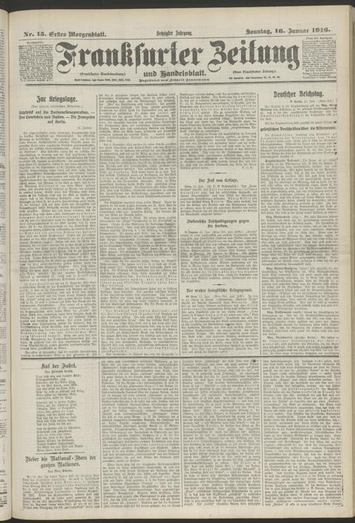 16.01.1916 = Nr. 15. Erstes Morgenblatt