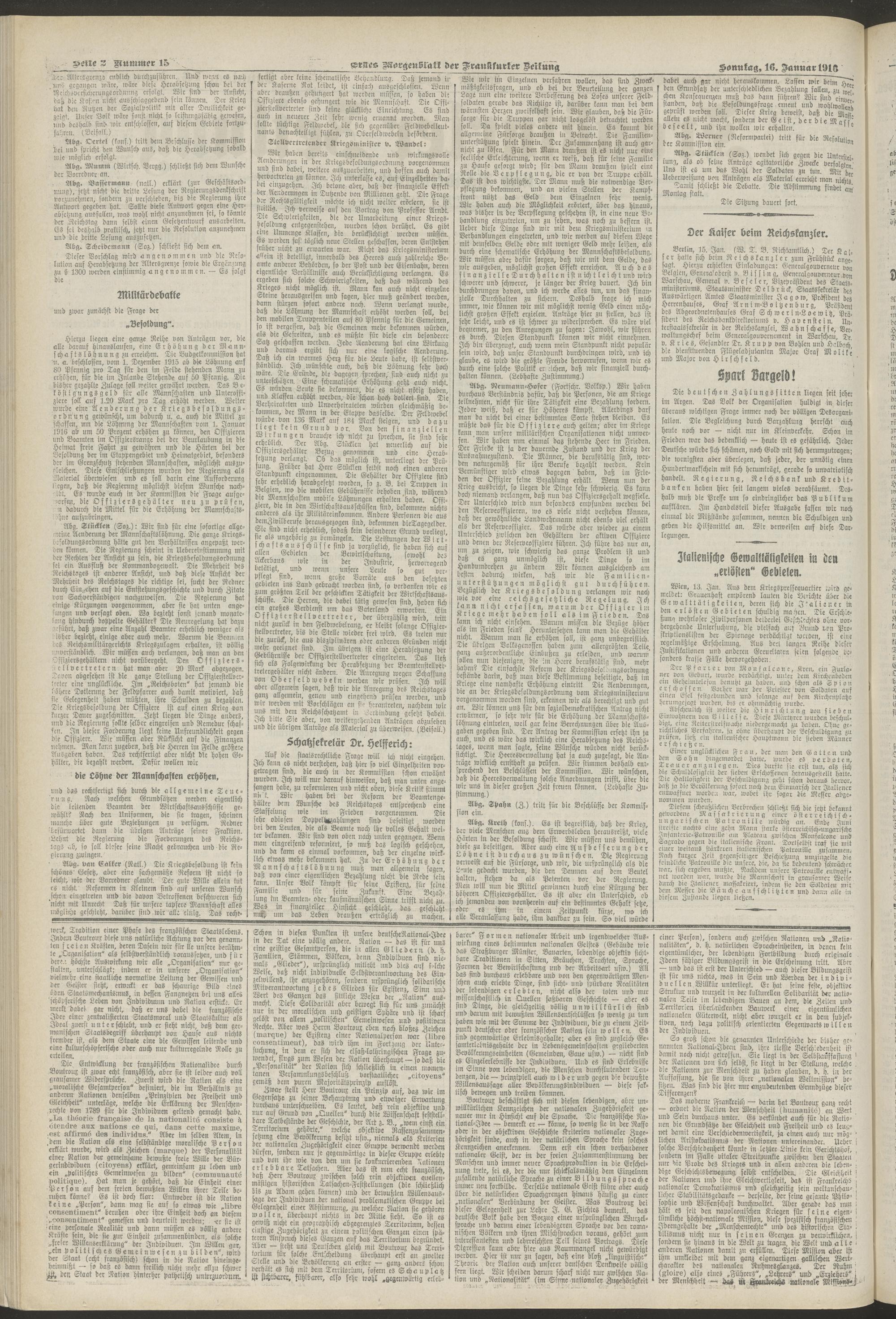 16.01.1916 = Nr. 15. Erstes Morgenblatt