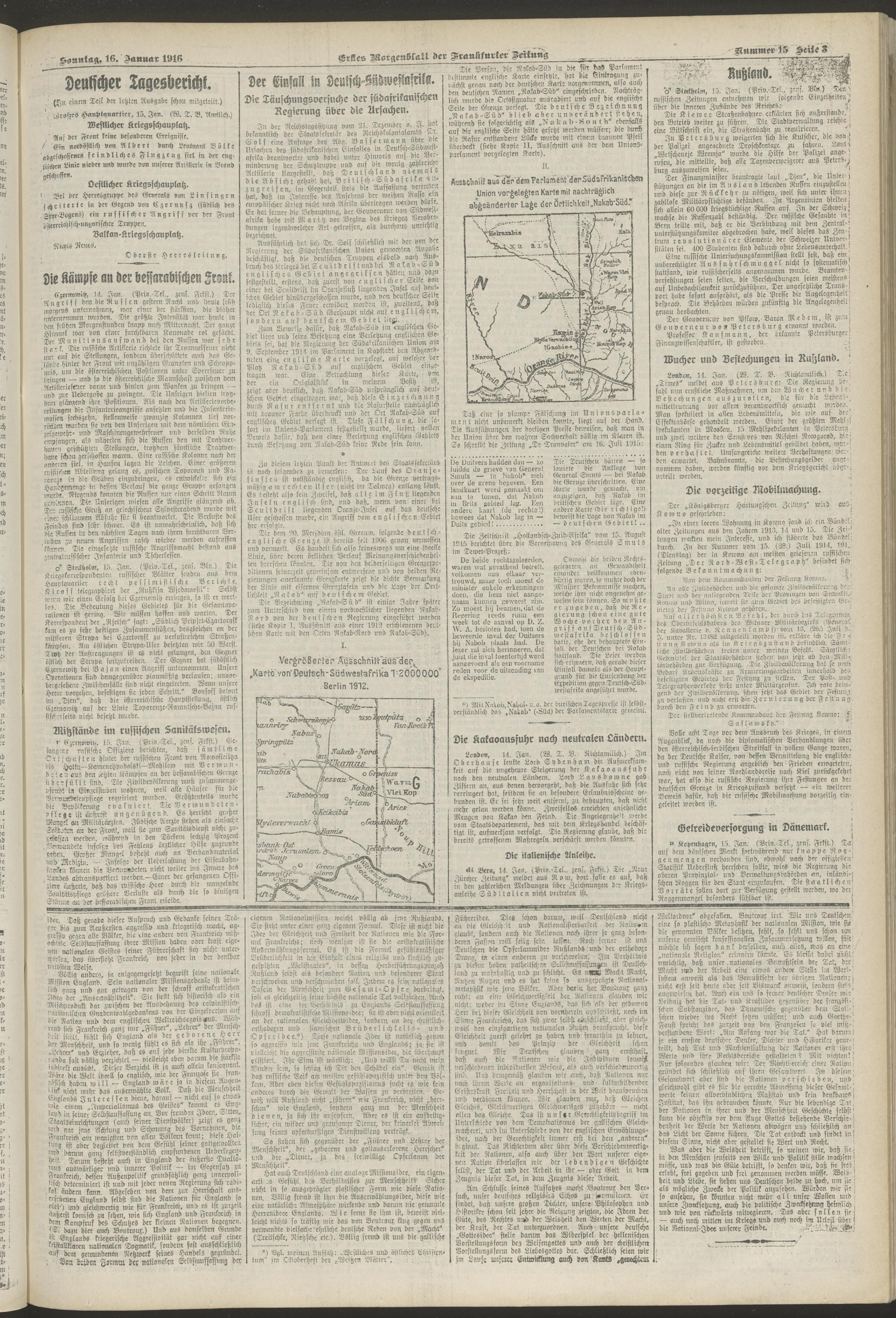 16.01.1916 = Nr. 15. Erstes Morgenblatt