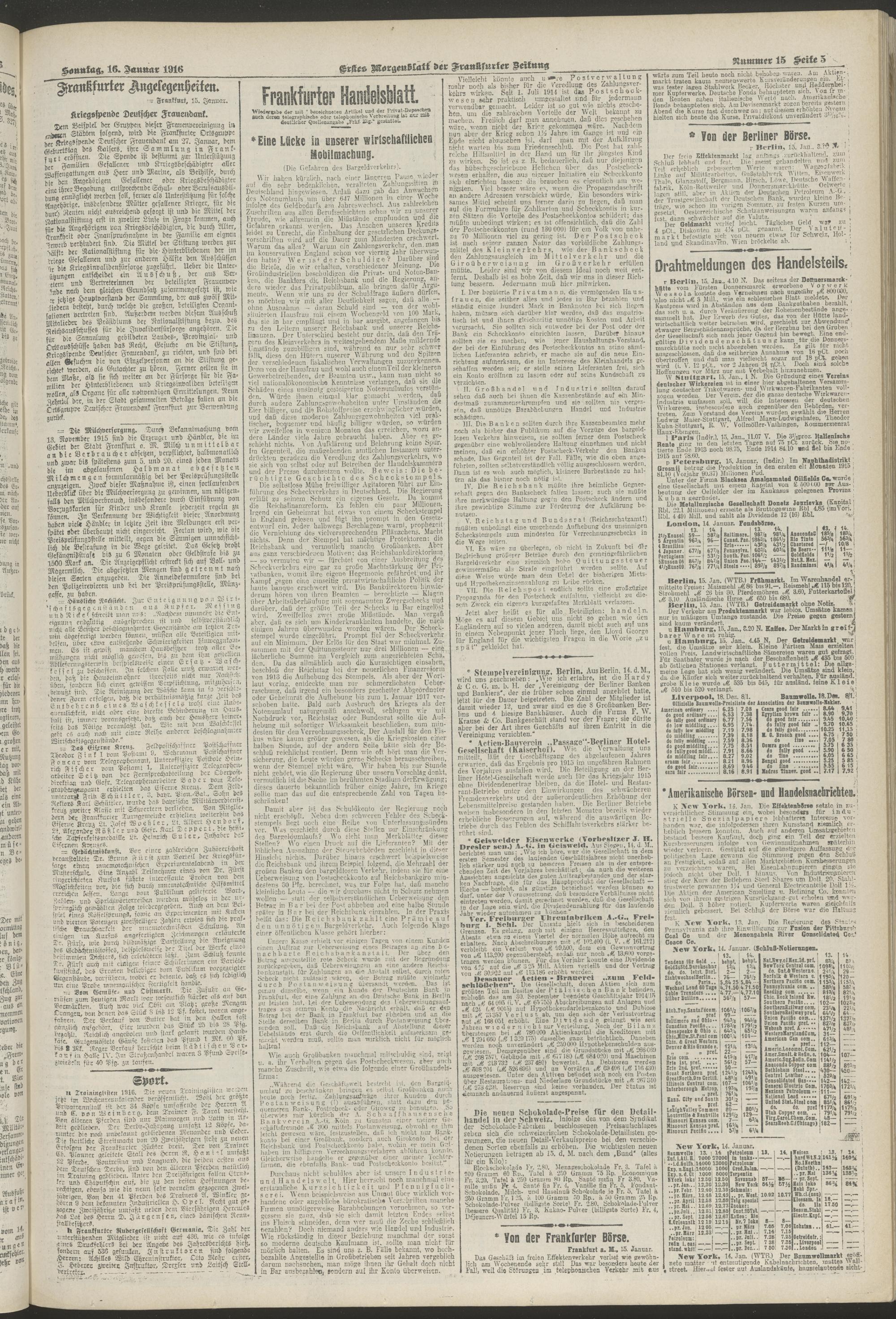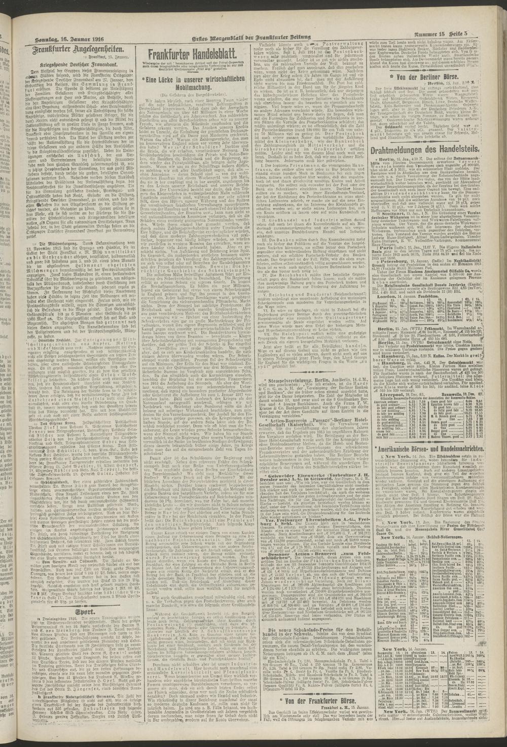 16.01.1916 = Nr. 15. Erstes Morgenblatt