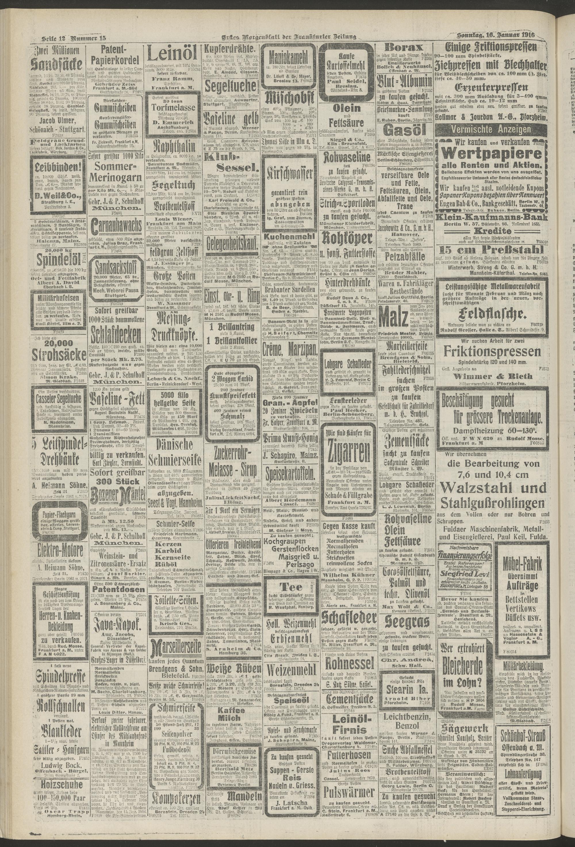 16.01.1916 = Nr. 15. Erstes Morgenblatt