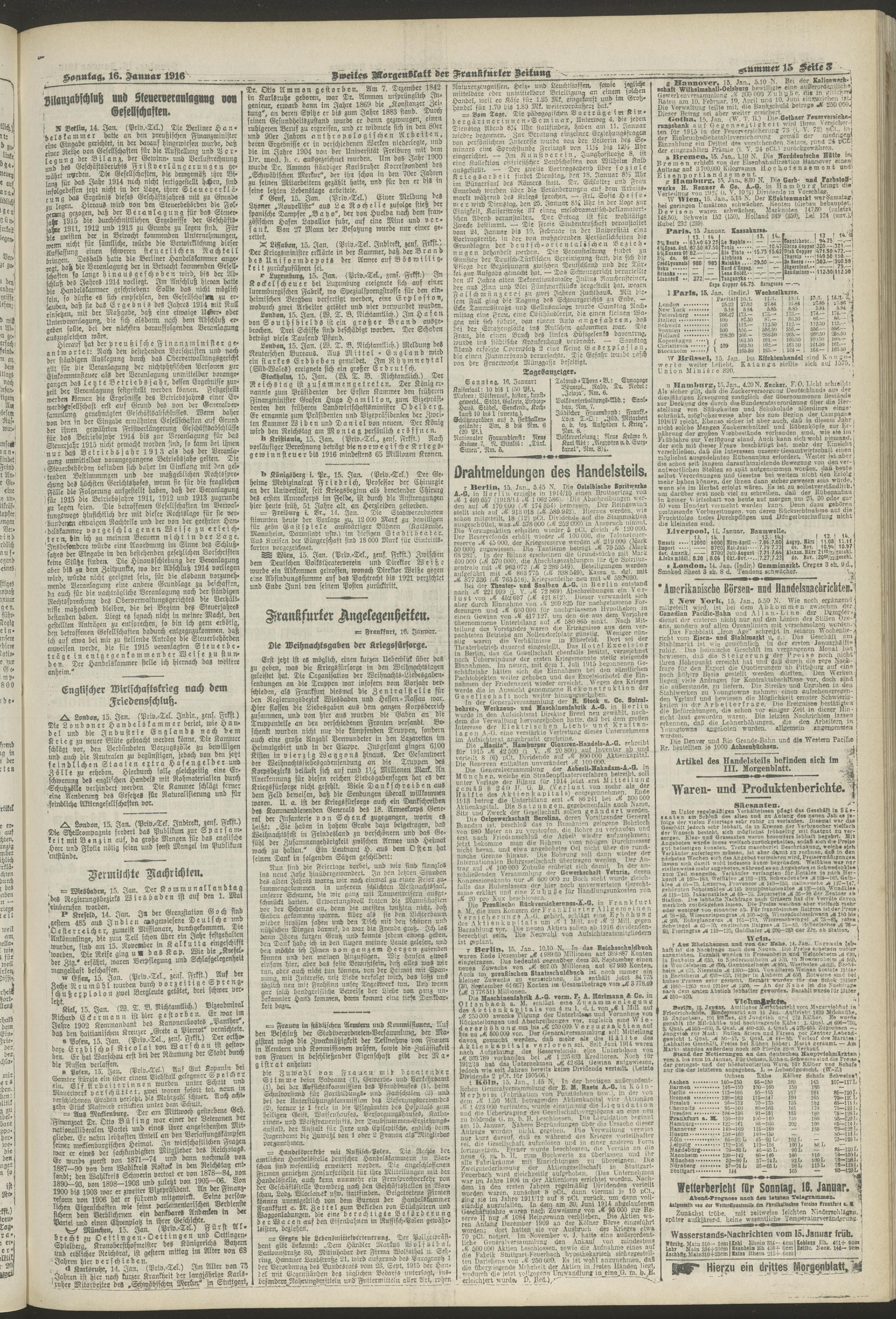 16.01.1916 = Nr. 15. Zweites Morgenblatt