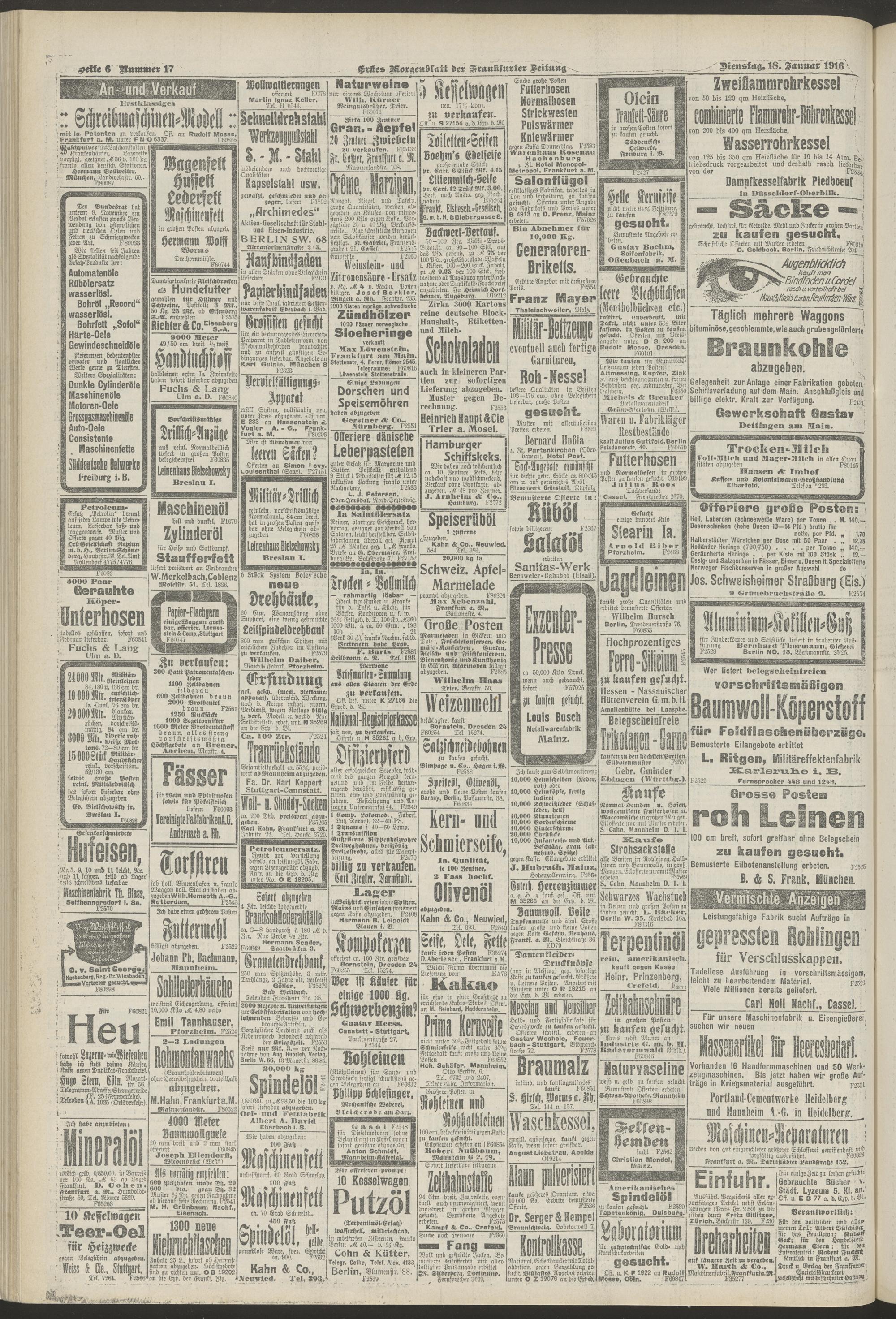 18.01.1916 = Nr. 17. Erstes Morgenblatt