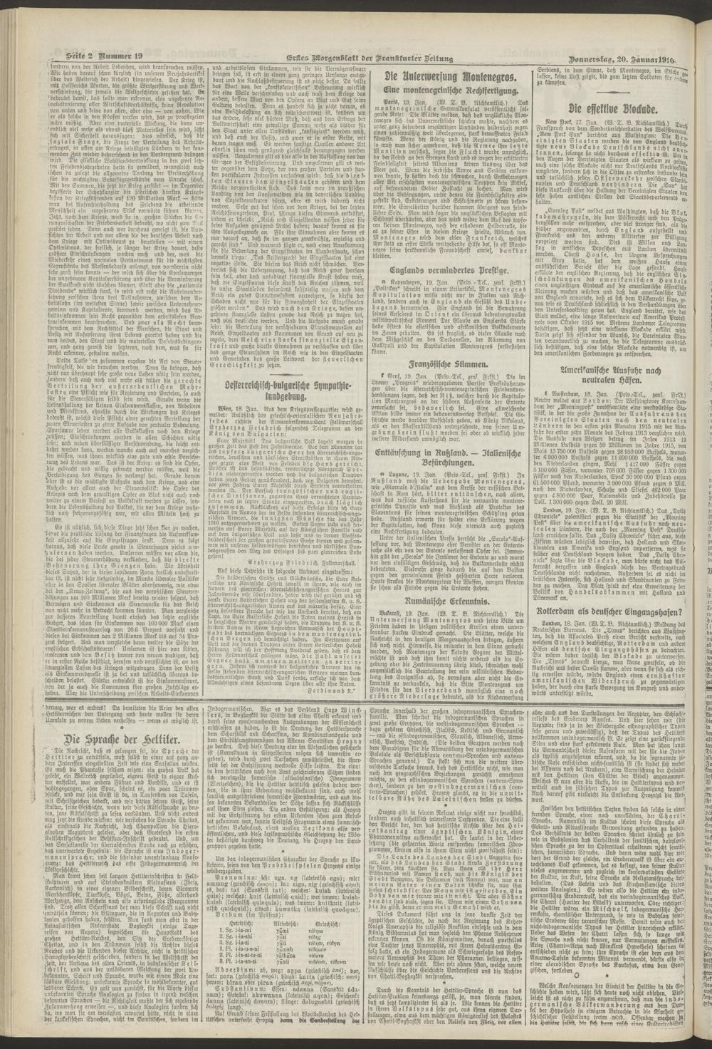 20.01.1916 = Nr. 19. Erstes Morgenblatt