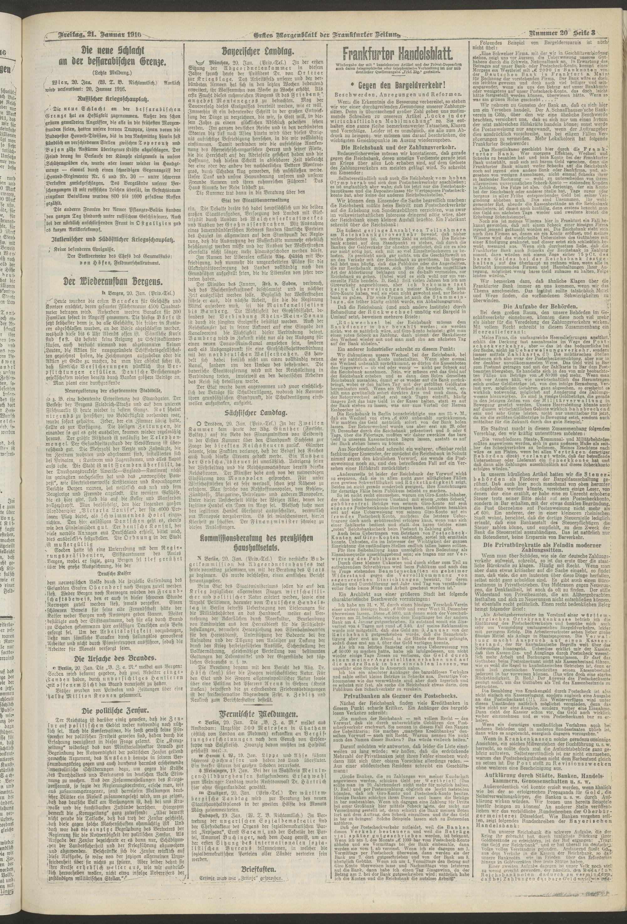 21.01.1916 = Nr. 20. Erstes Morgenblatt
