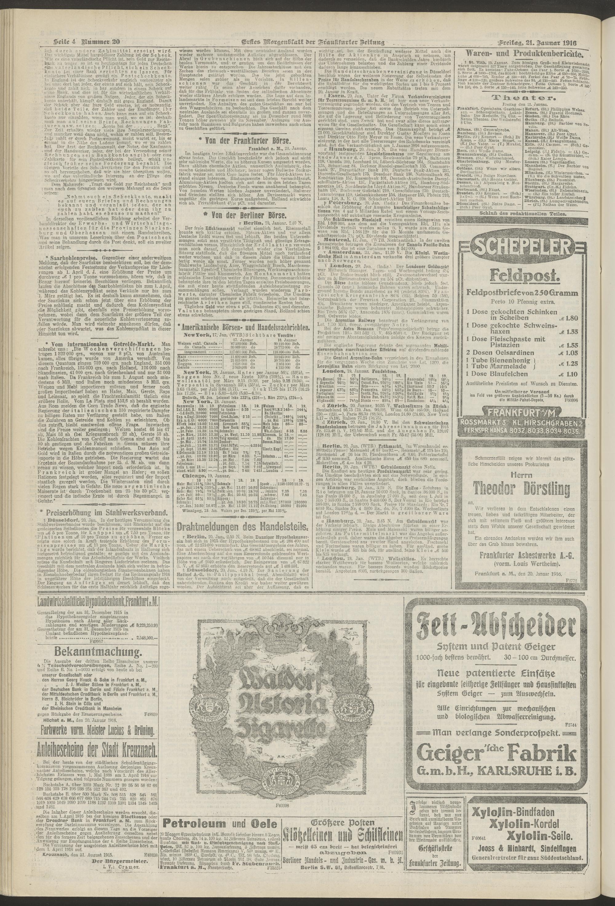 21.01.1916 = Nr. 20. Erstes Morgenblatt