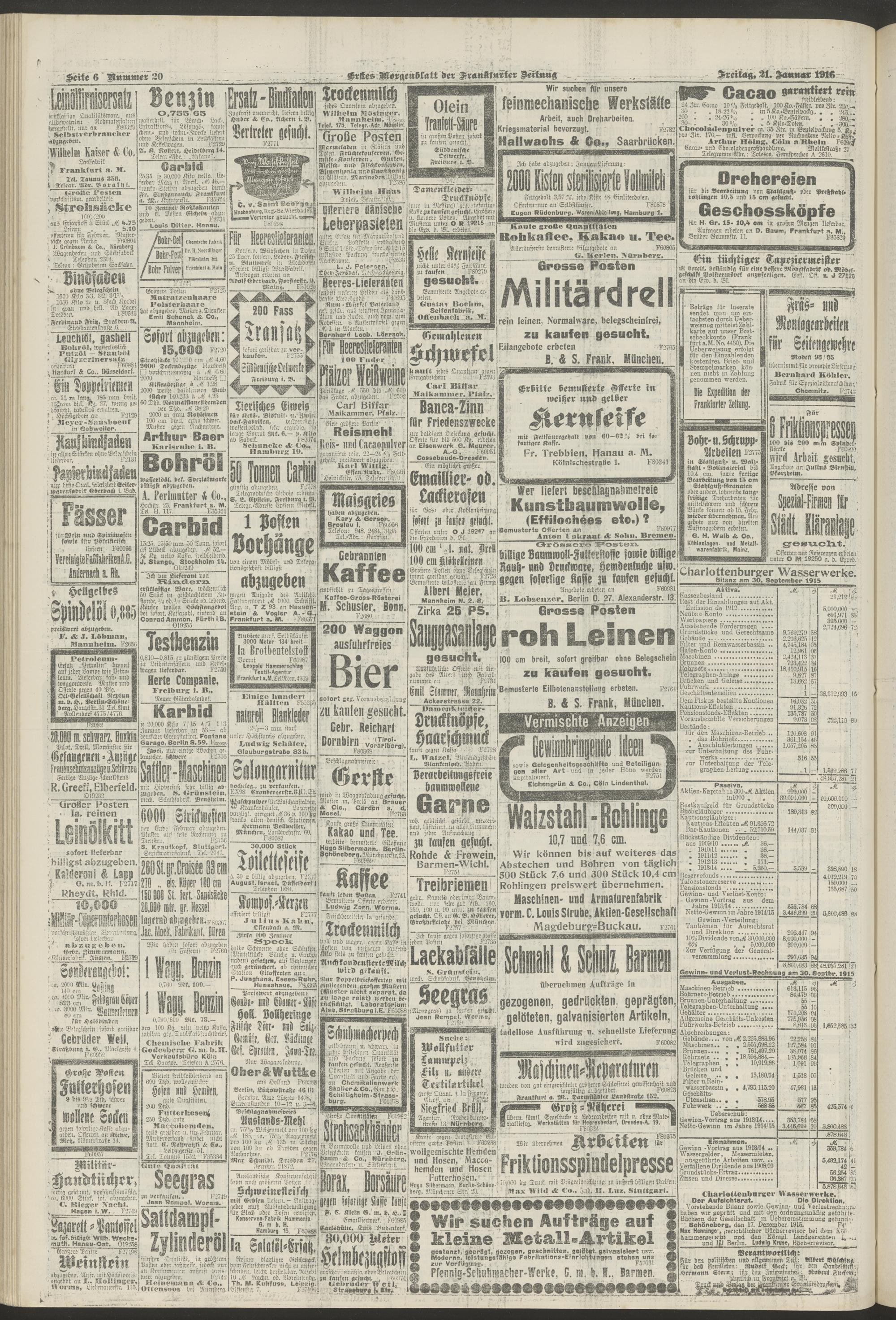 21.01.1916 = Nr. 20. Erstes Morgenblatt