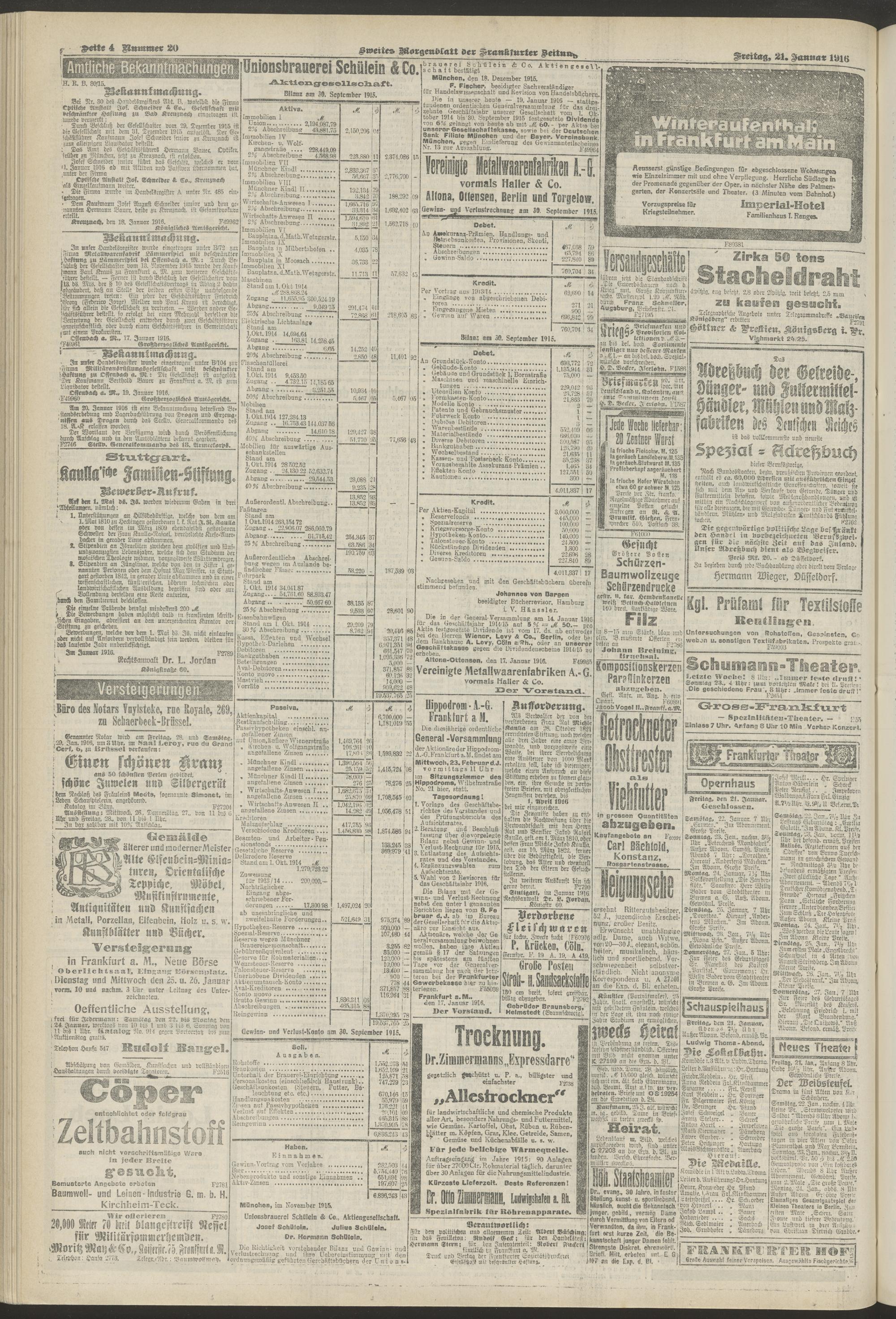21.01.1916 = Nr. 20. Zweites Morgenblatt