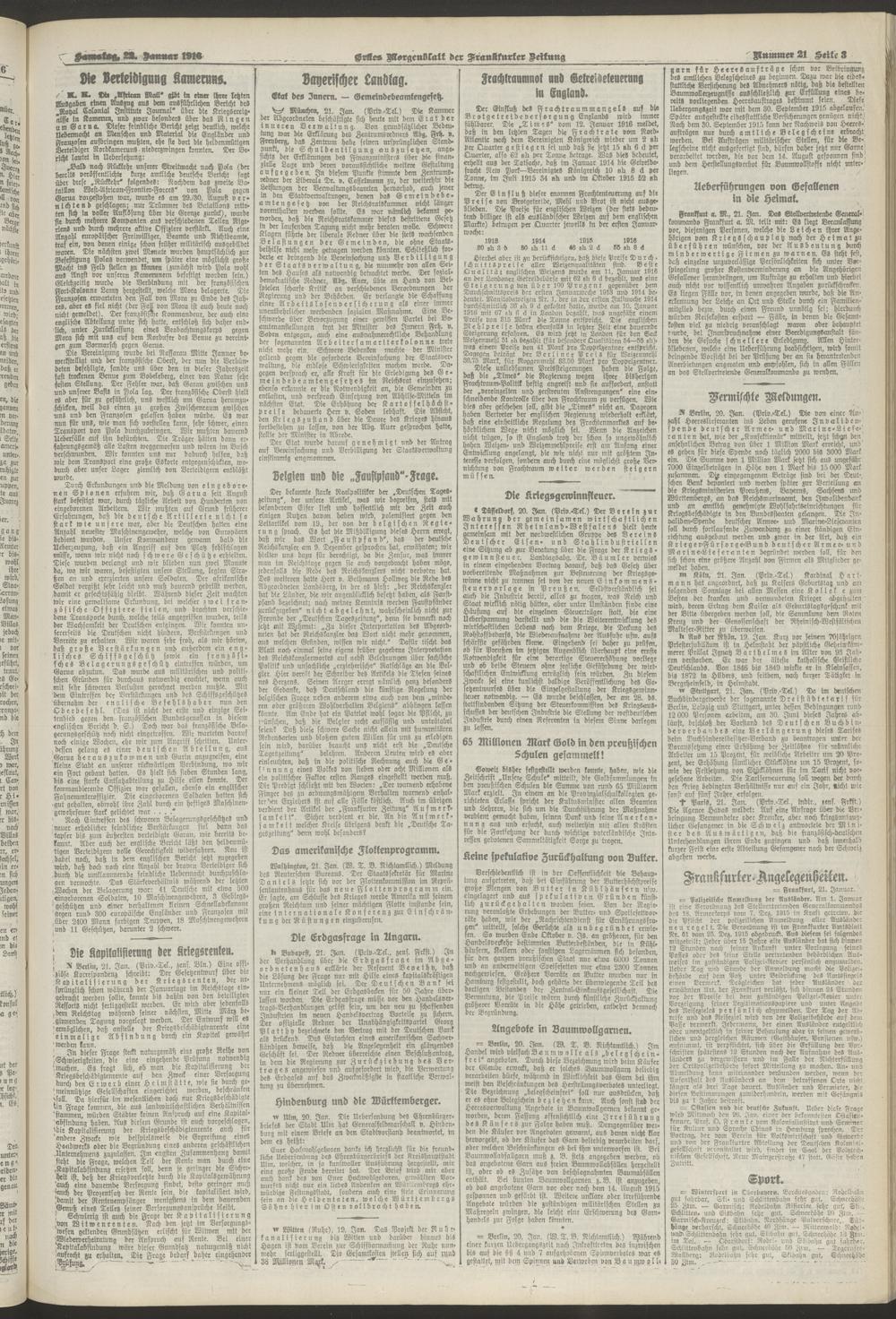 22.01.1916 = Nr. 21. Erstes Morgenblatt