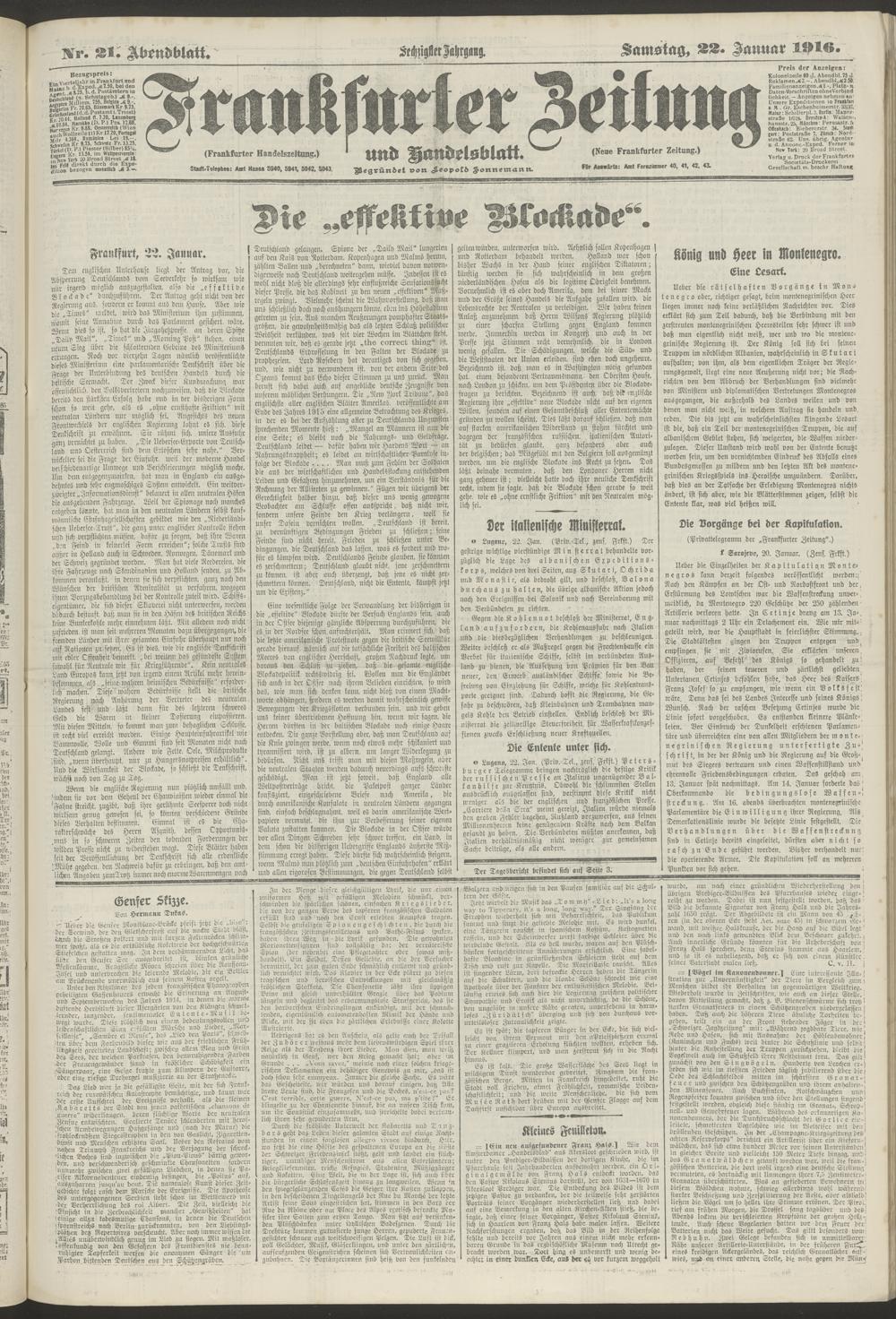 22.01.1916 = Nr. 21. Abendblatt