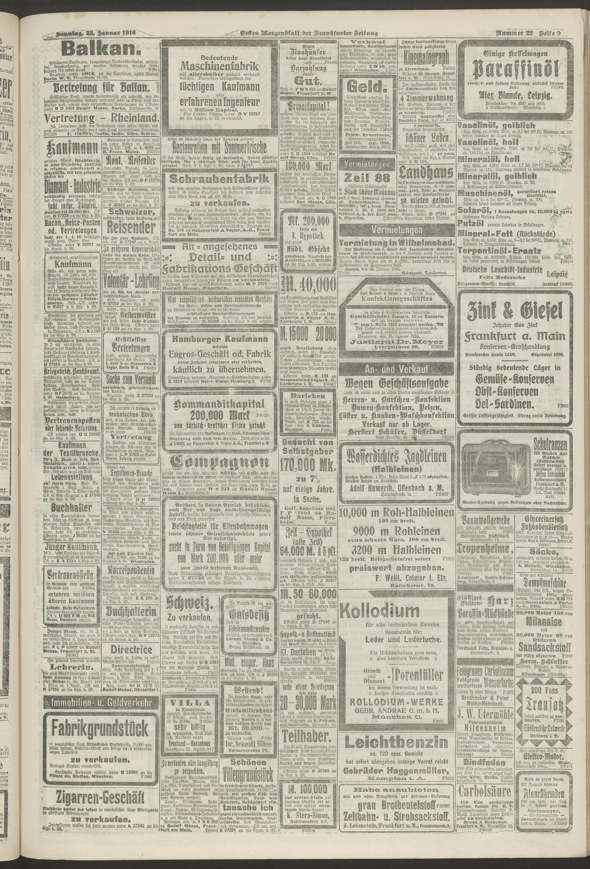 23.01.1916 = Nr. 22. Erstes Morgenblatt