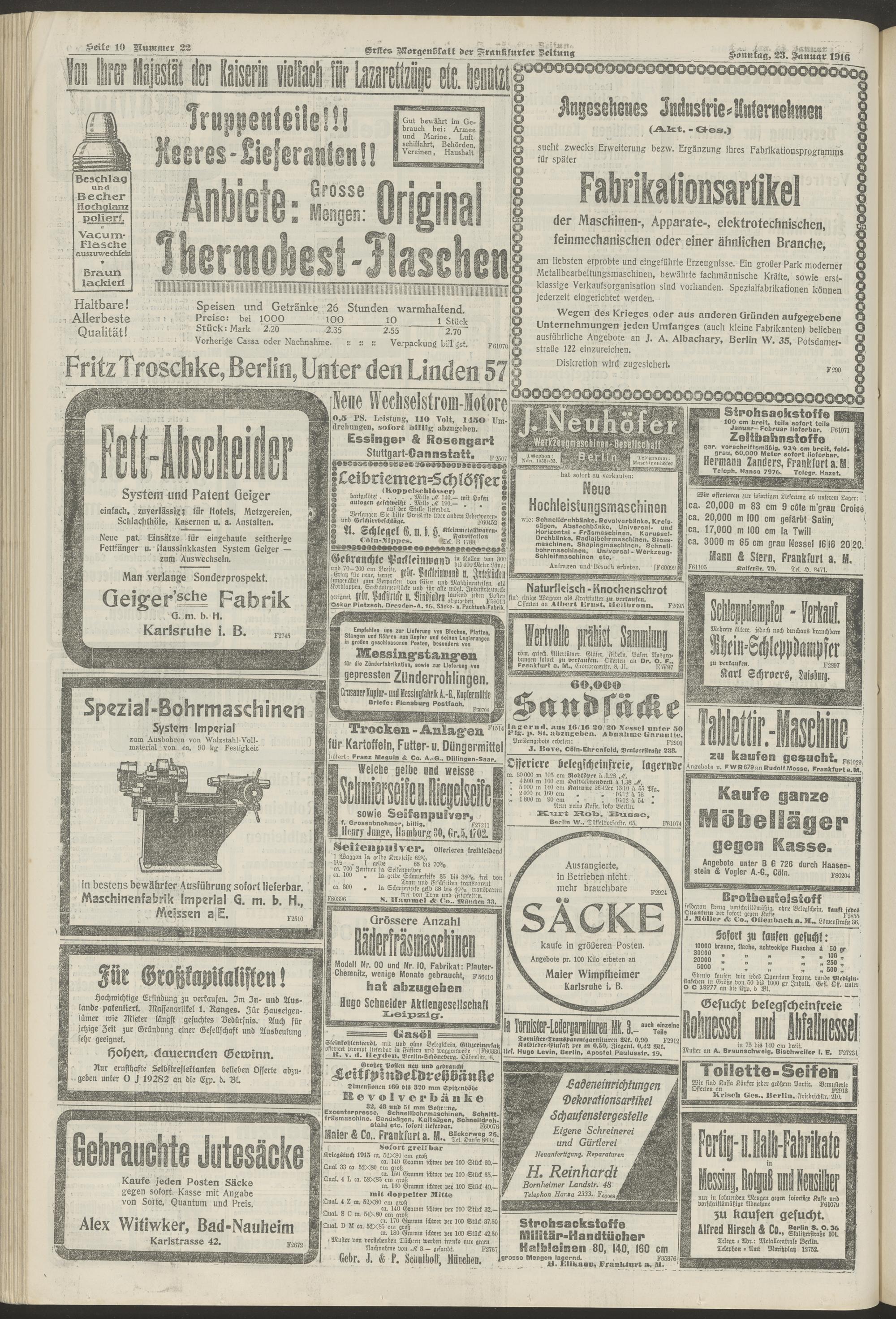 23.01.1916 = Nr. 22. Erstes Morgenblatt