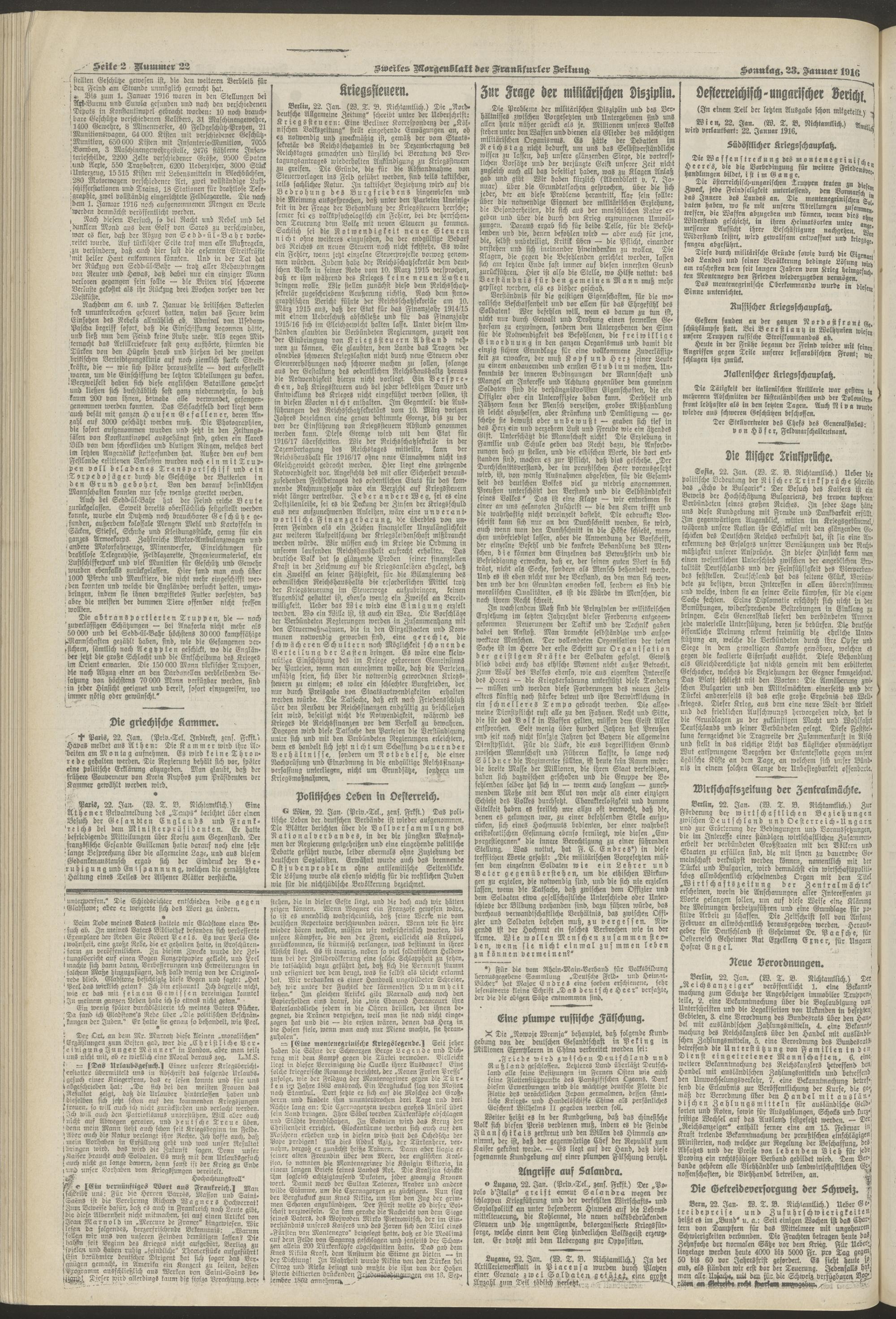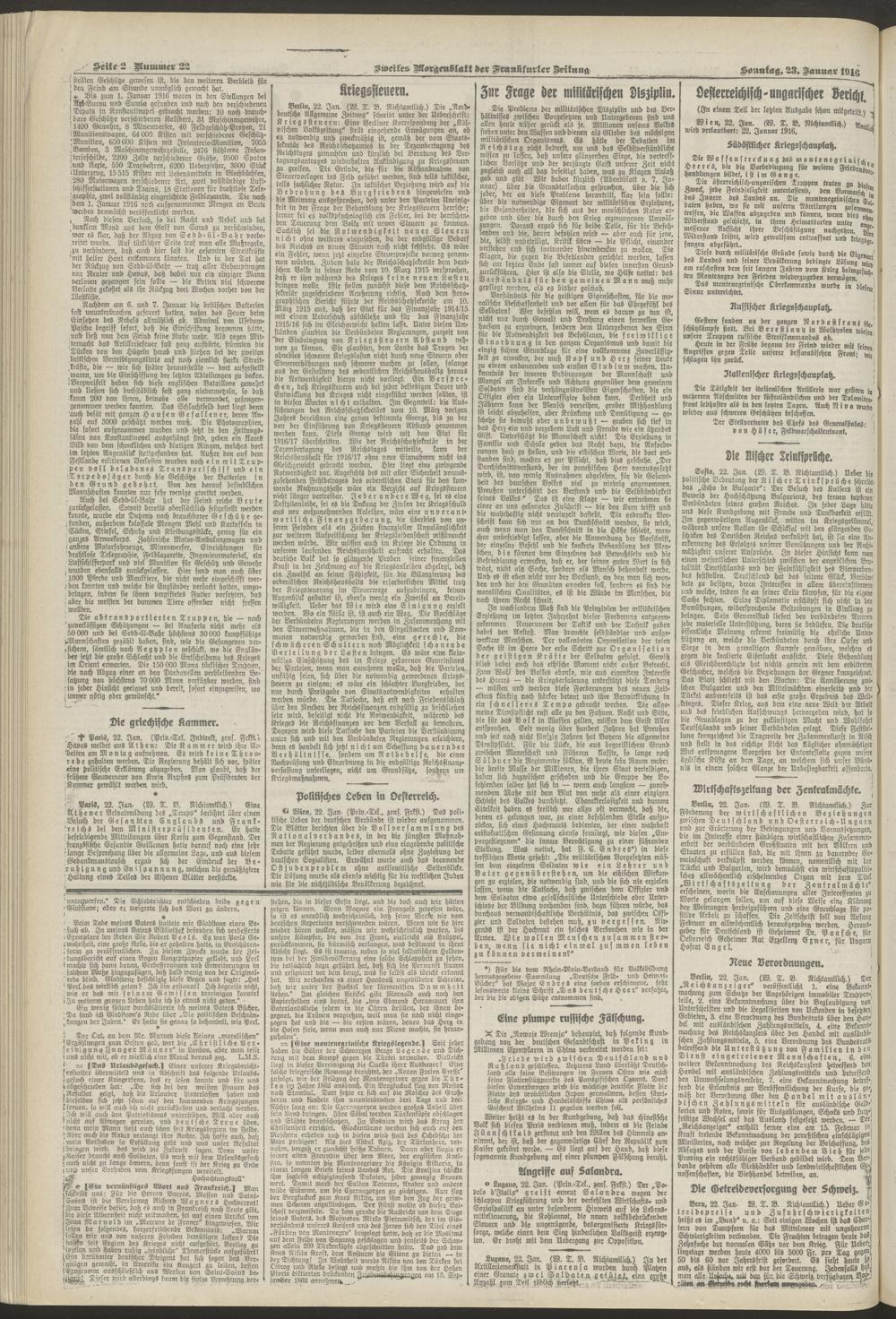 23.01.1916 = Nr. 22. Zweites Morgenblatt