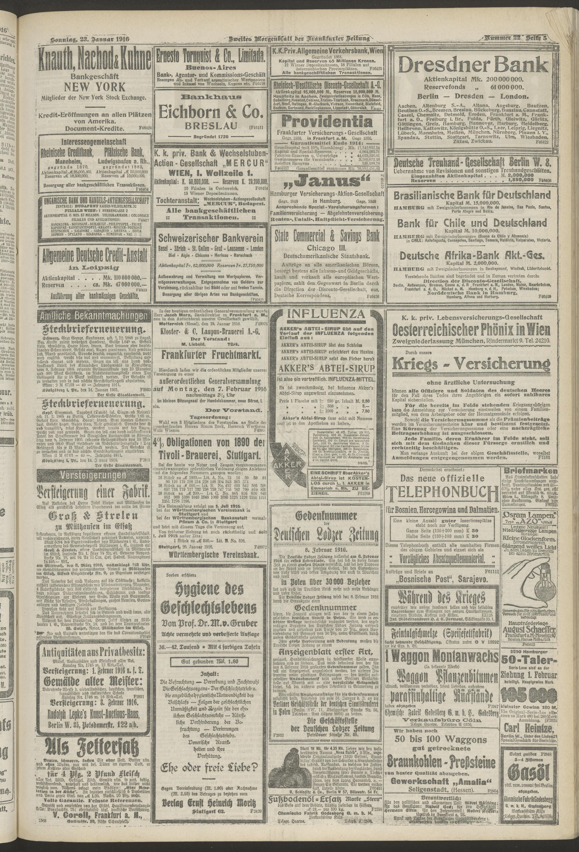23.01.1916 = Nr. 22. Zweites Morgenblatt