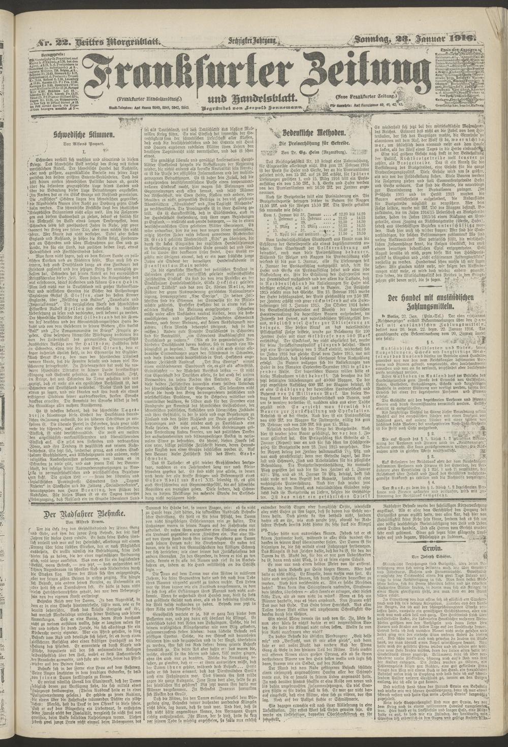 23.01.1916 = Nr. 22. Drittes Morgenblatt