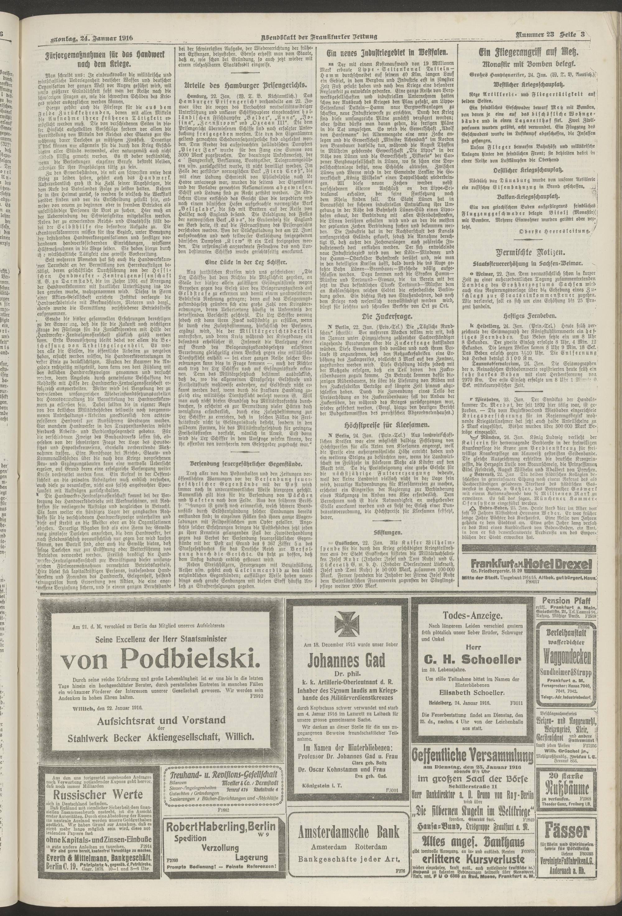 24.01.1916 = Nr. 23. Abendblatt