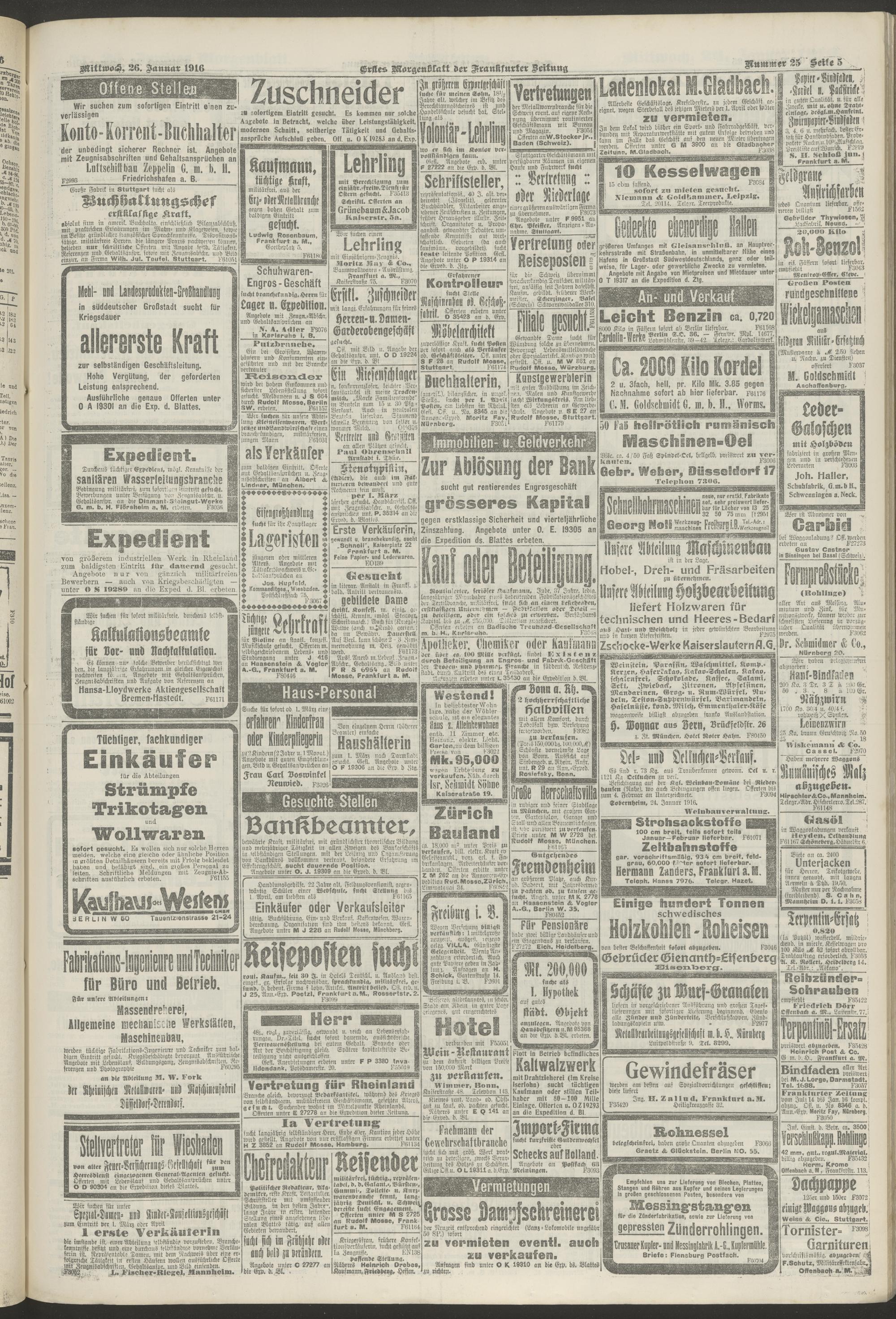 26.01.1916 = Nr. 25. Erstes Morgenblatt