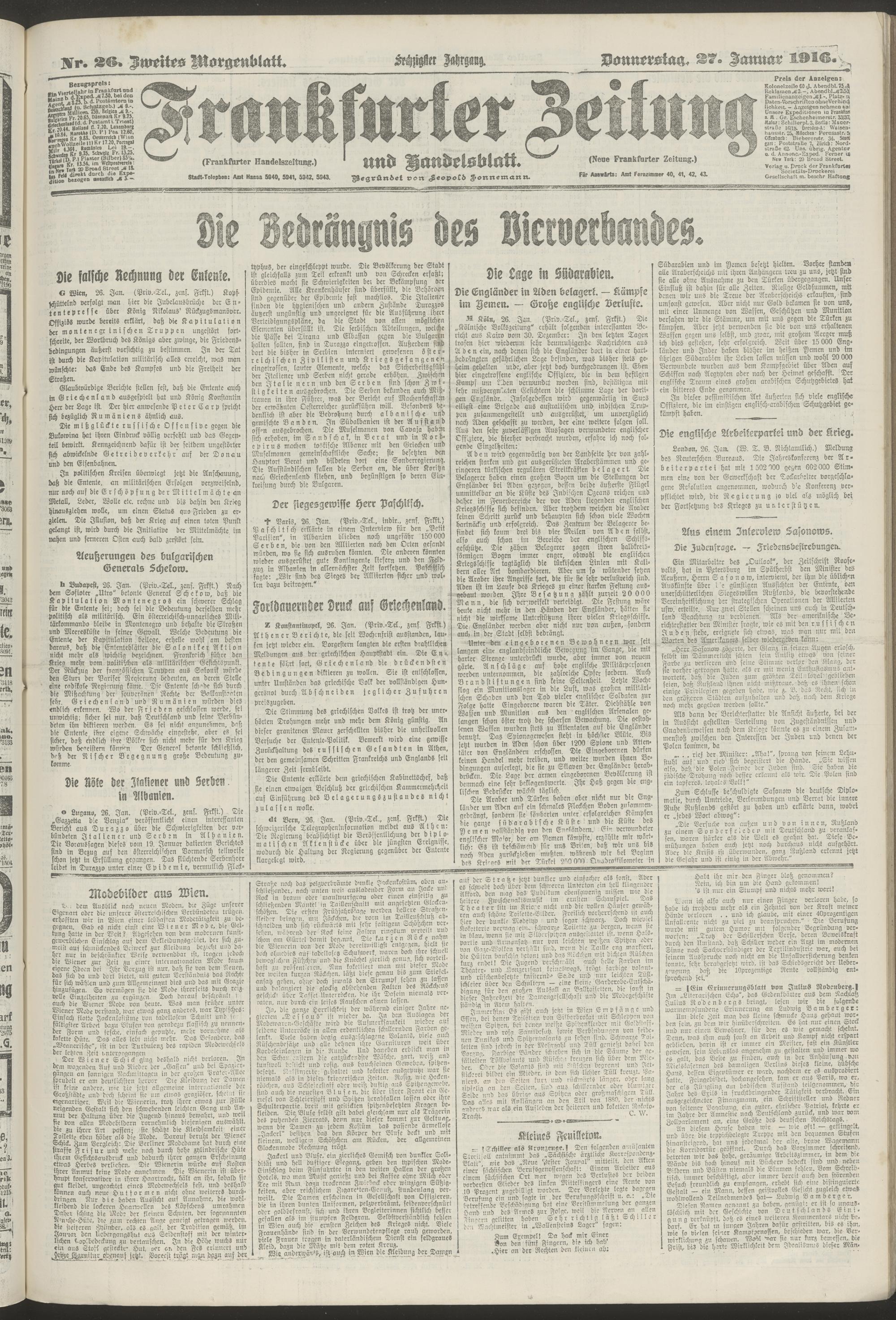 27.01.1916 = Nr. 26. Zweites Morgenblatt