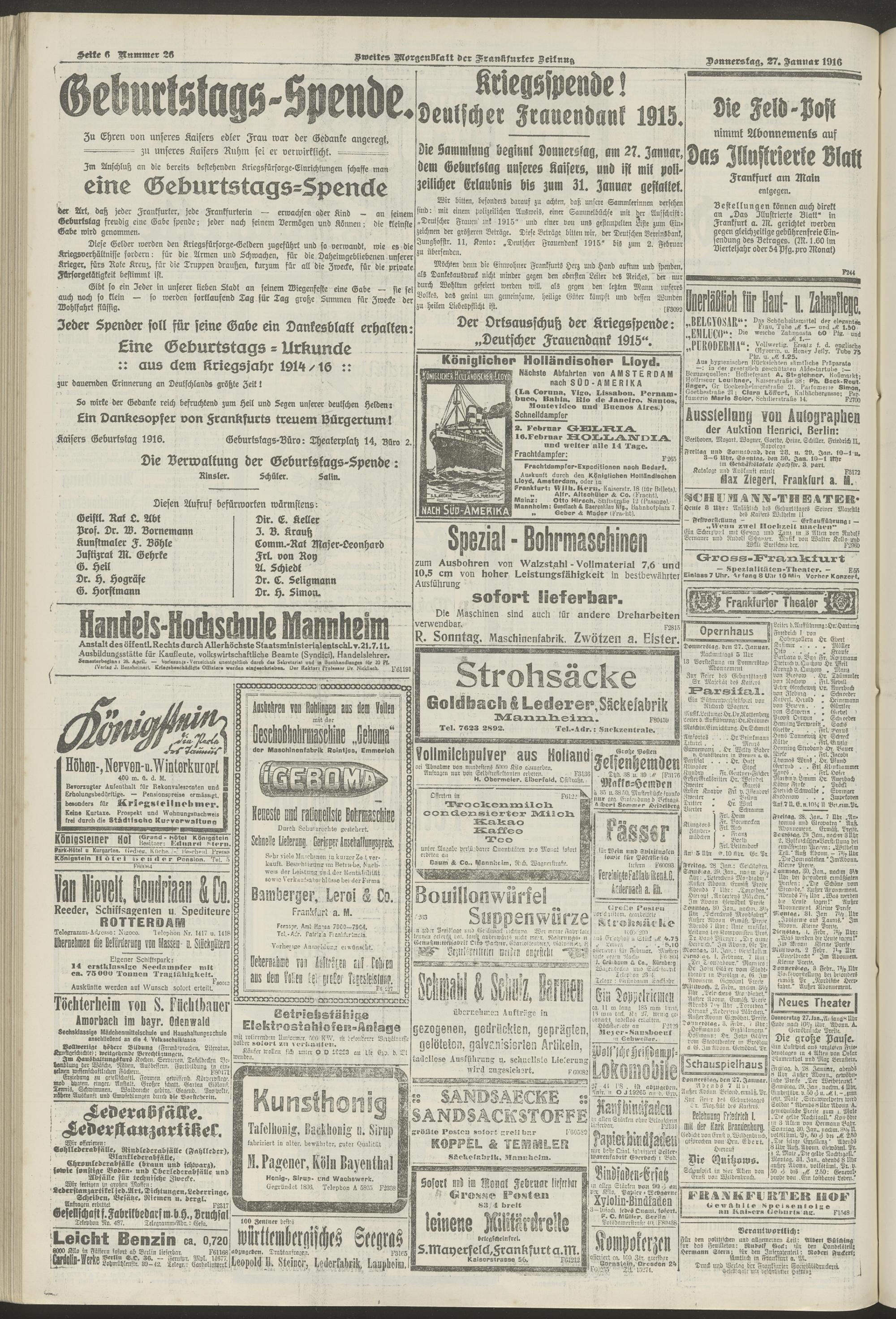 27.01.1916 = Nr. 26. Zweites Morgenblatt