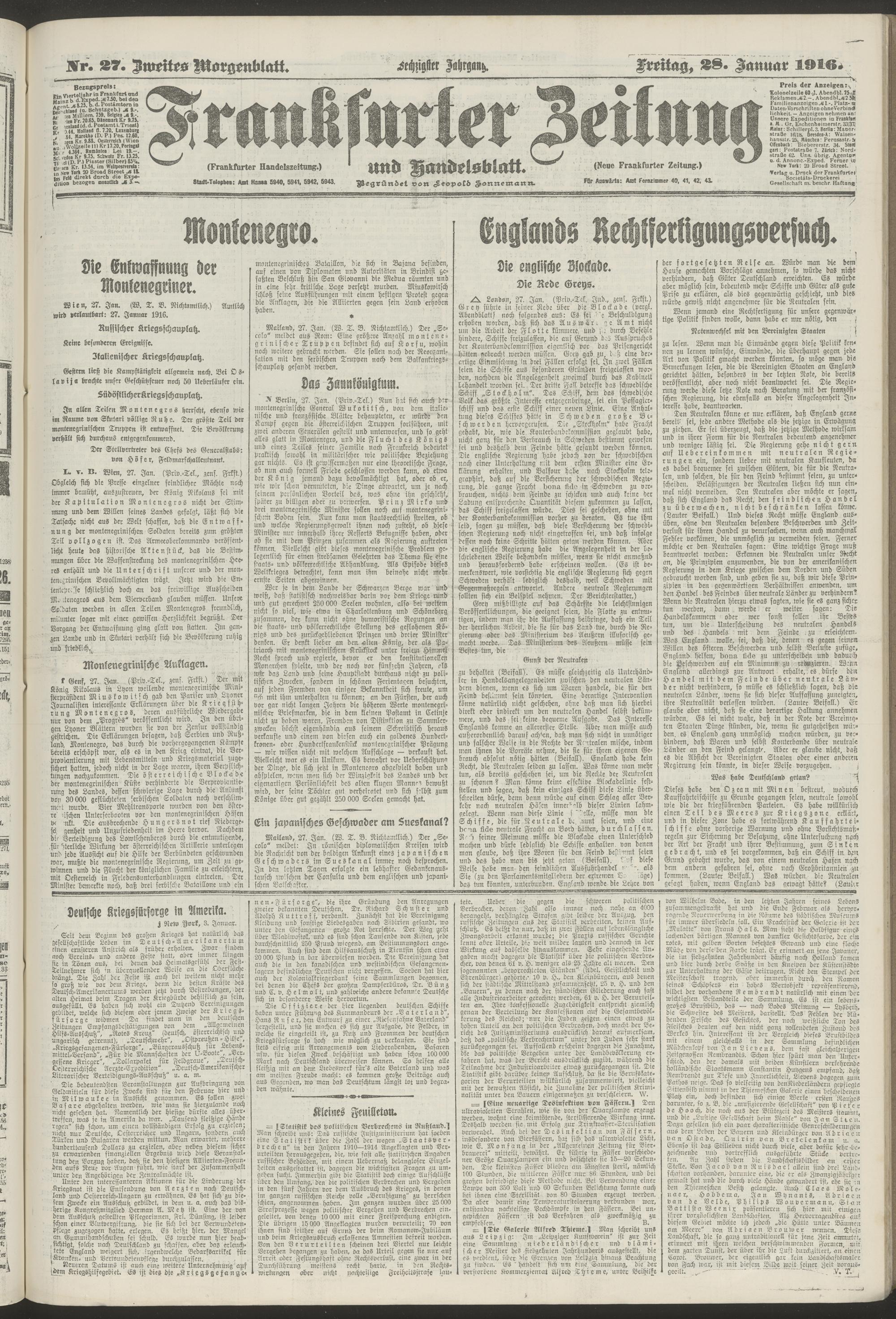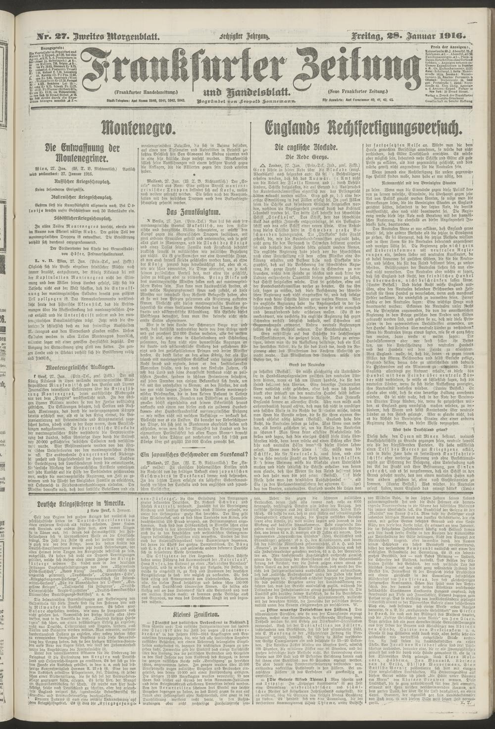 28.01.1916 = Nr. 27. Zweites Morgenblatt