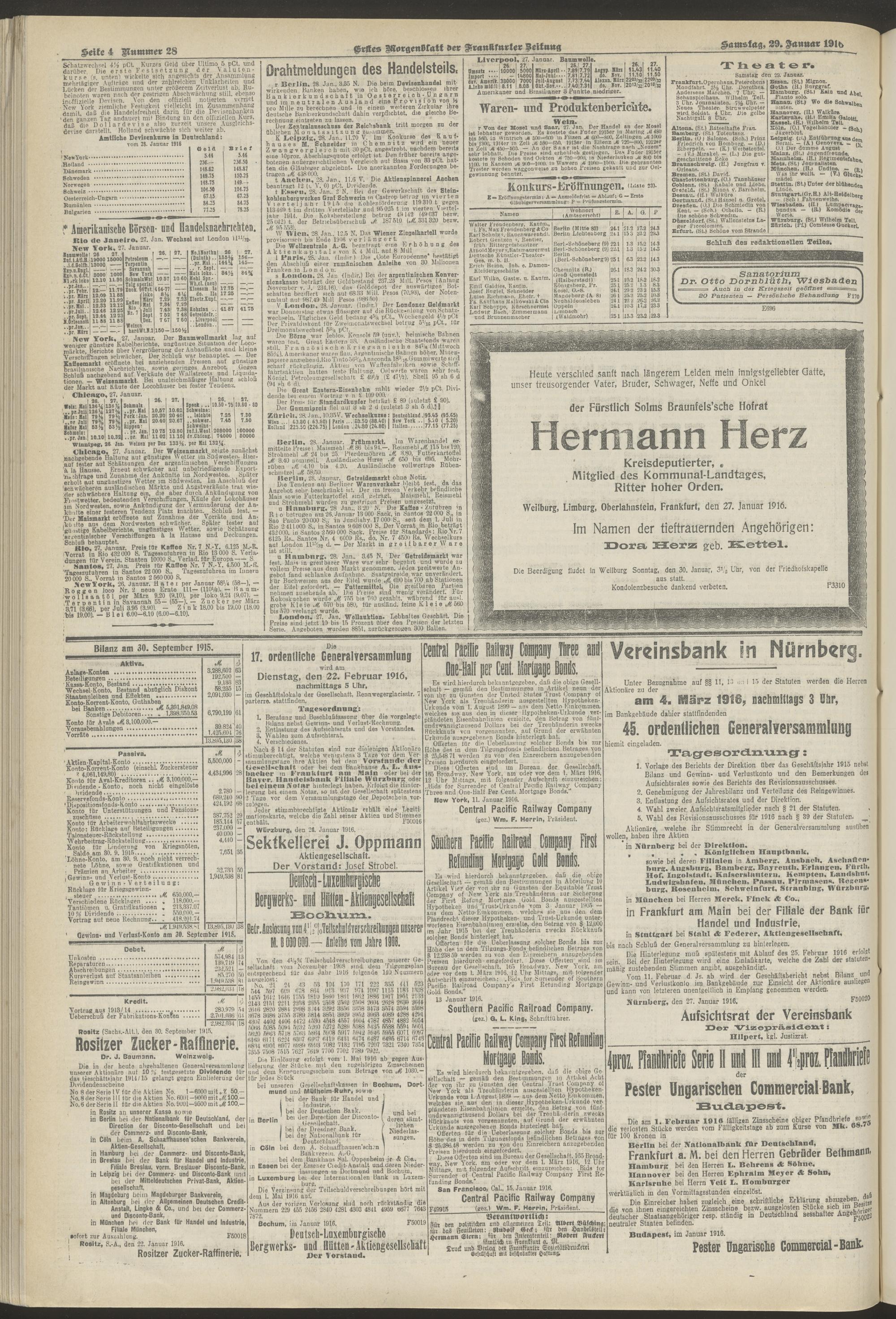 29.01.1916 = Nr. 28. Erstes Morgenblatt