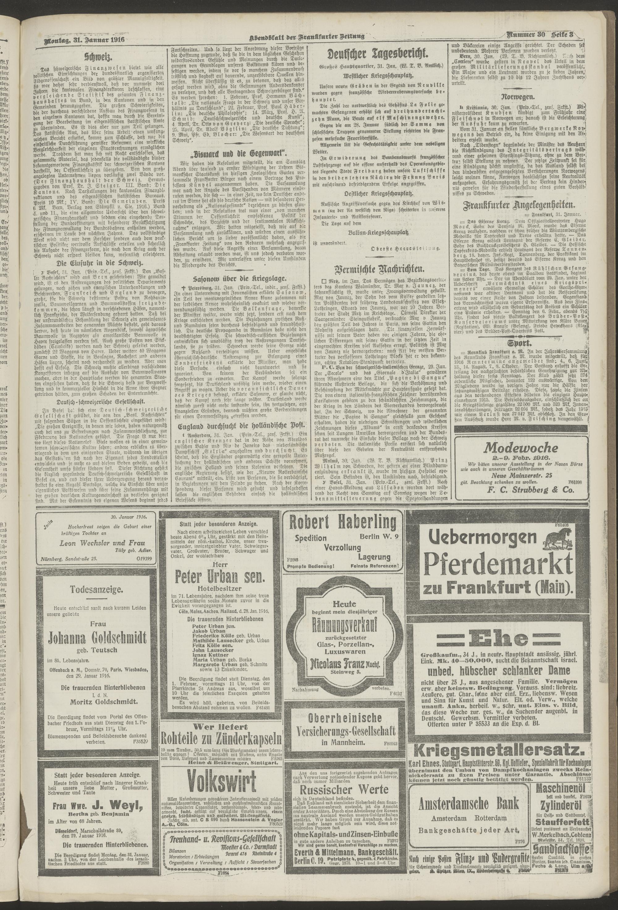 31.01.1916 = Nr. 30. Abendblatt