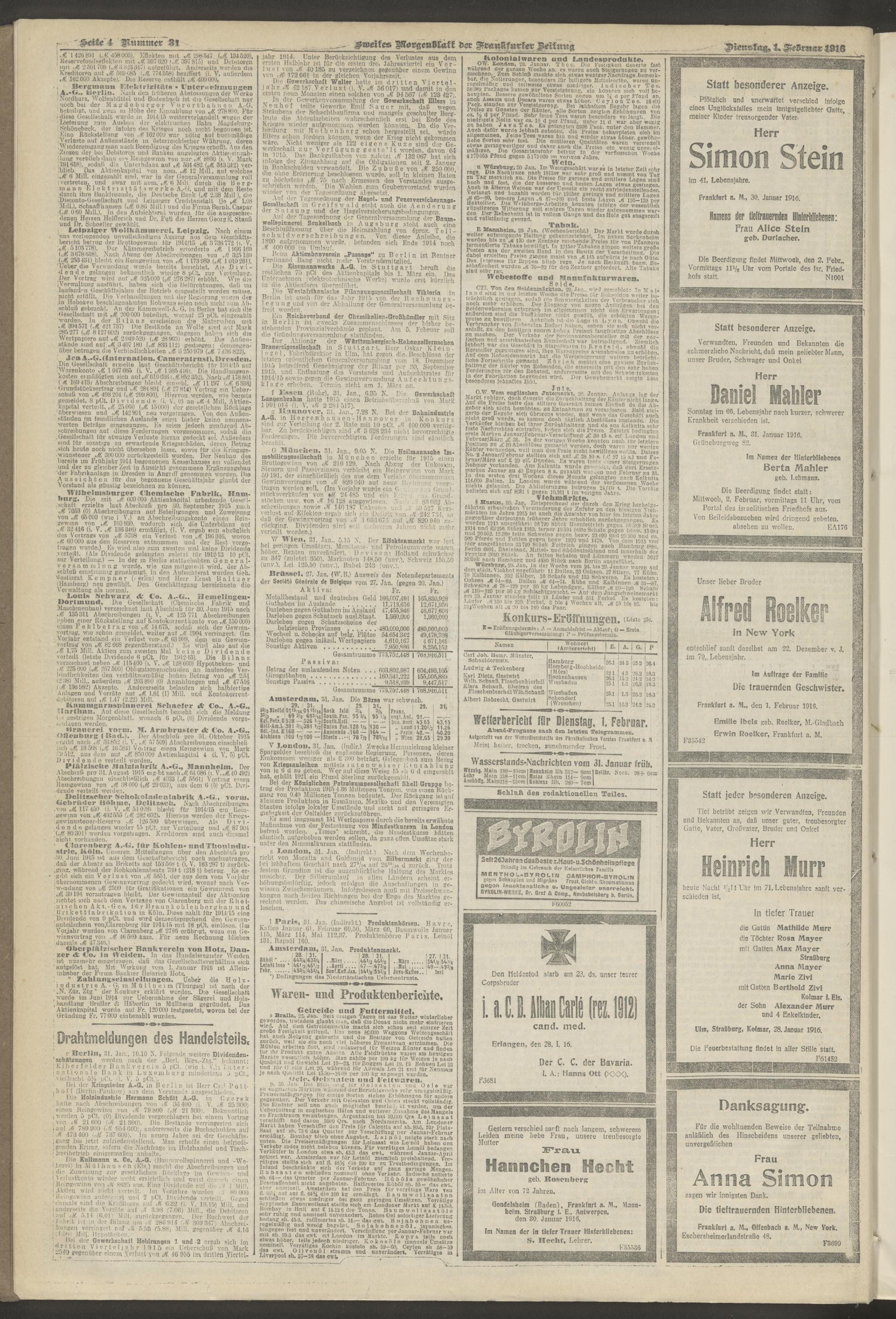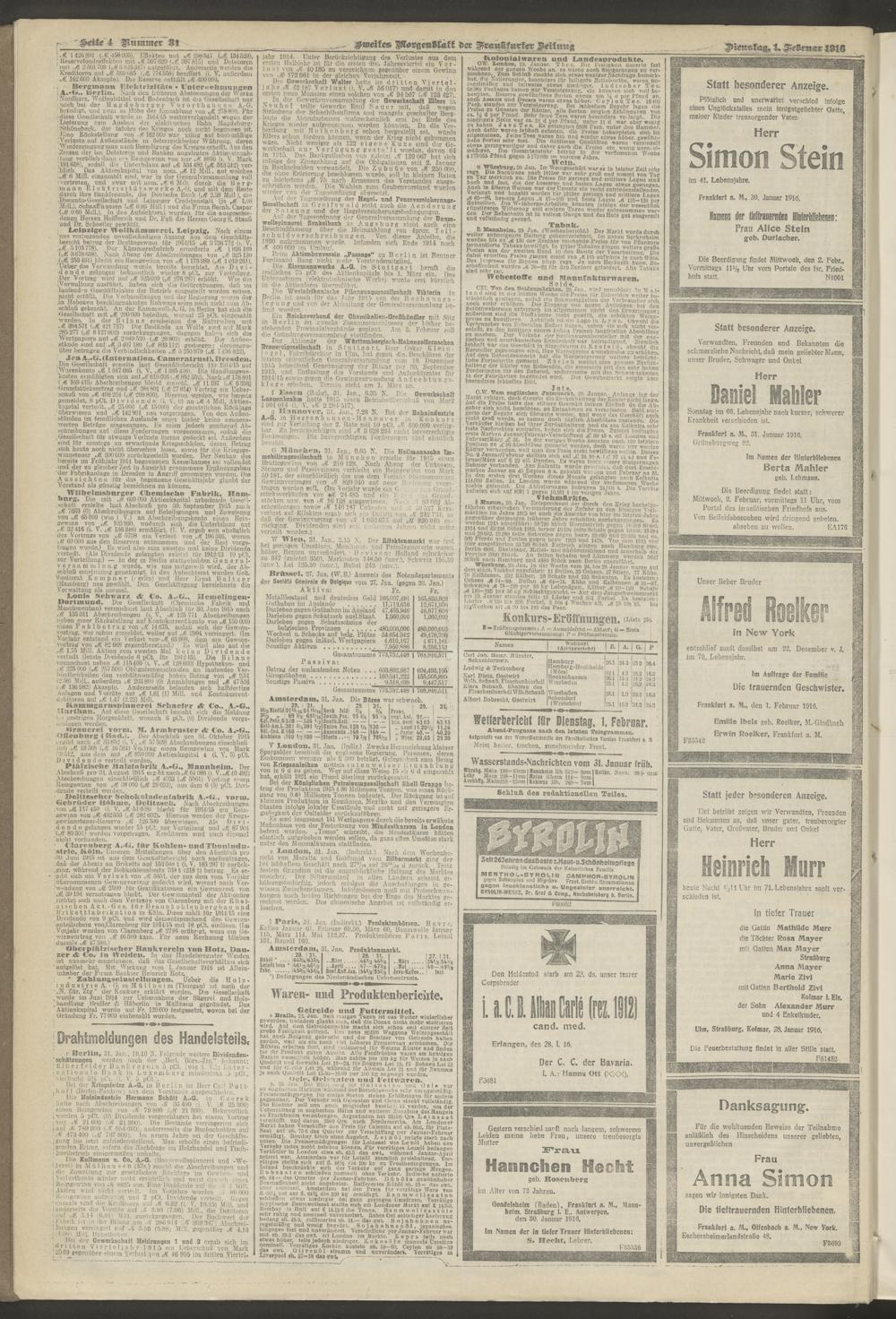 01.02.1916 = Nr. 31. Zweites Morgenblatt