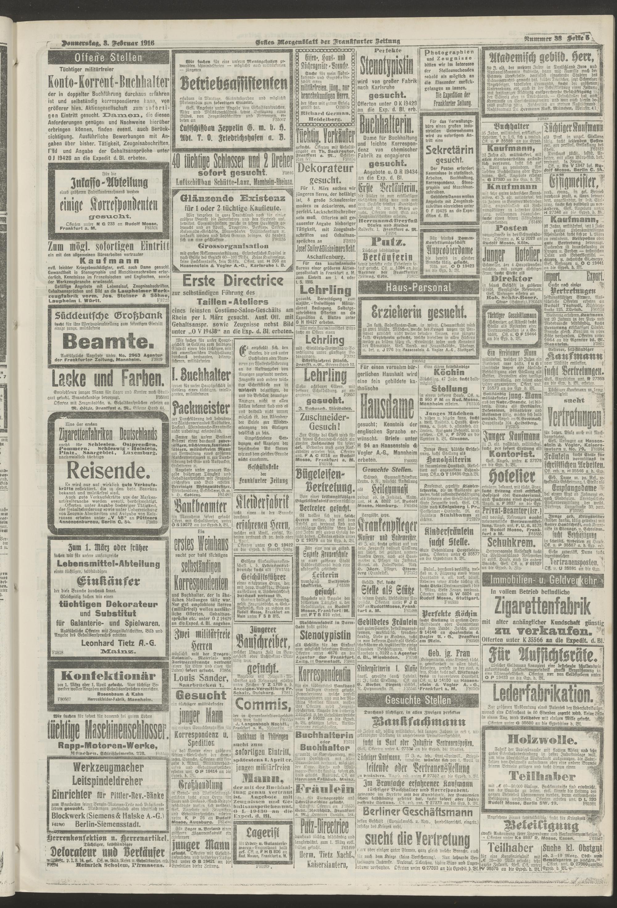 03.02.1916 = Nr. 33. Erstes Morgenblatt