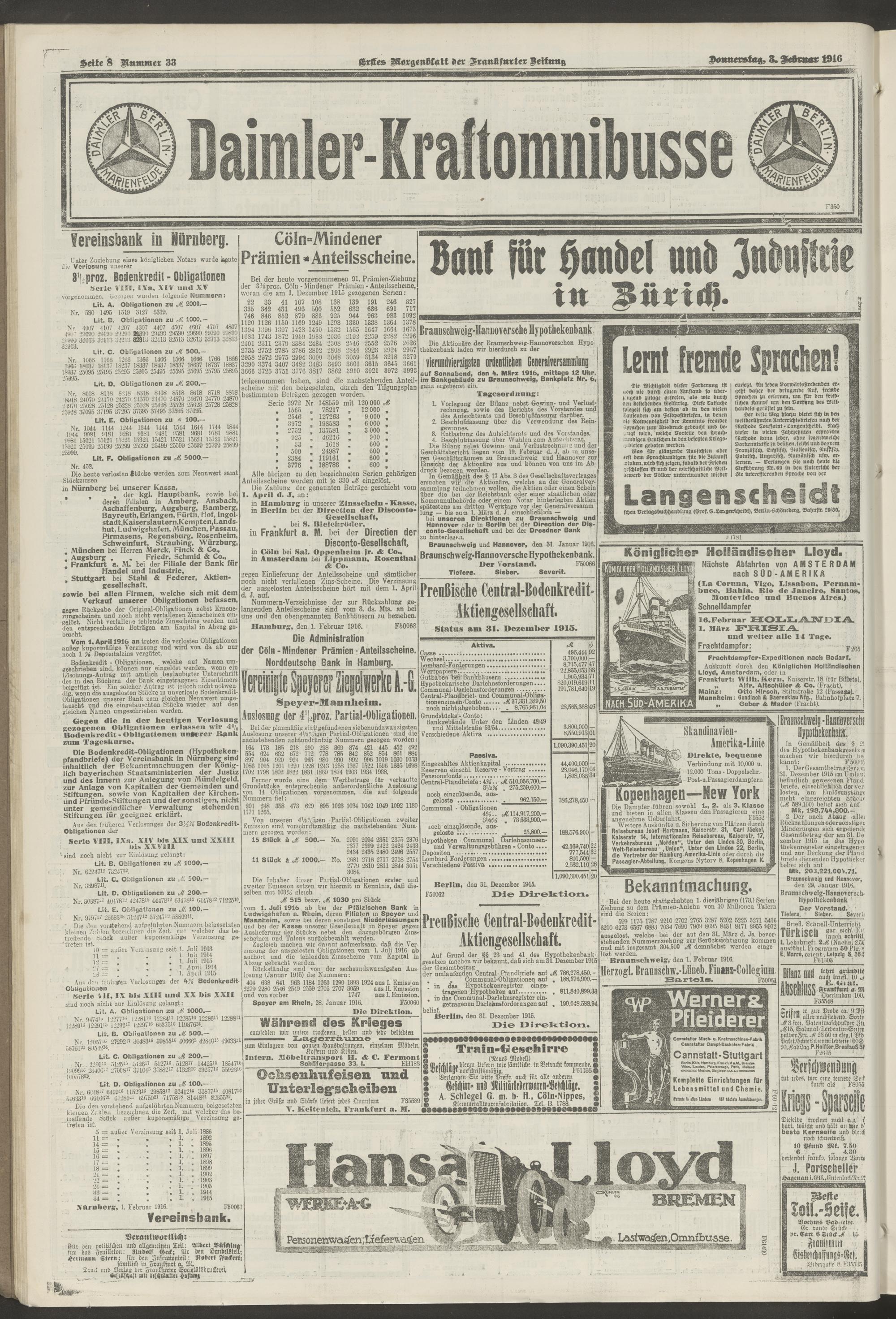 03.02.1916 = Nr. 33. Erstes Morgenblatt