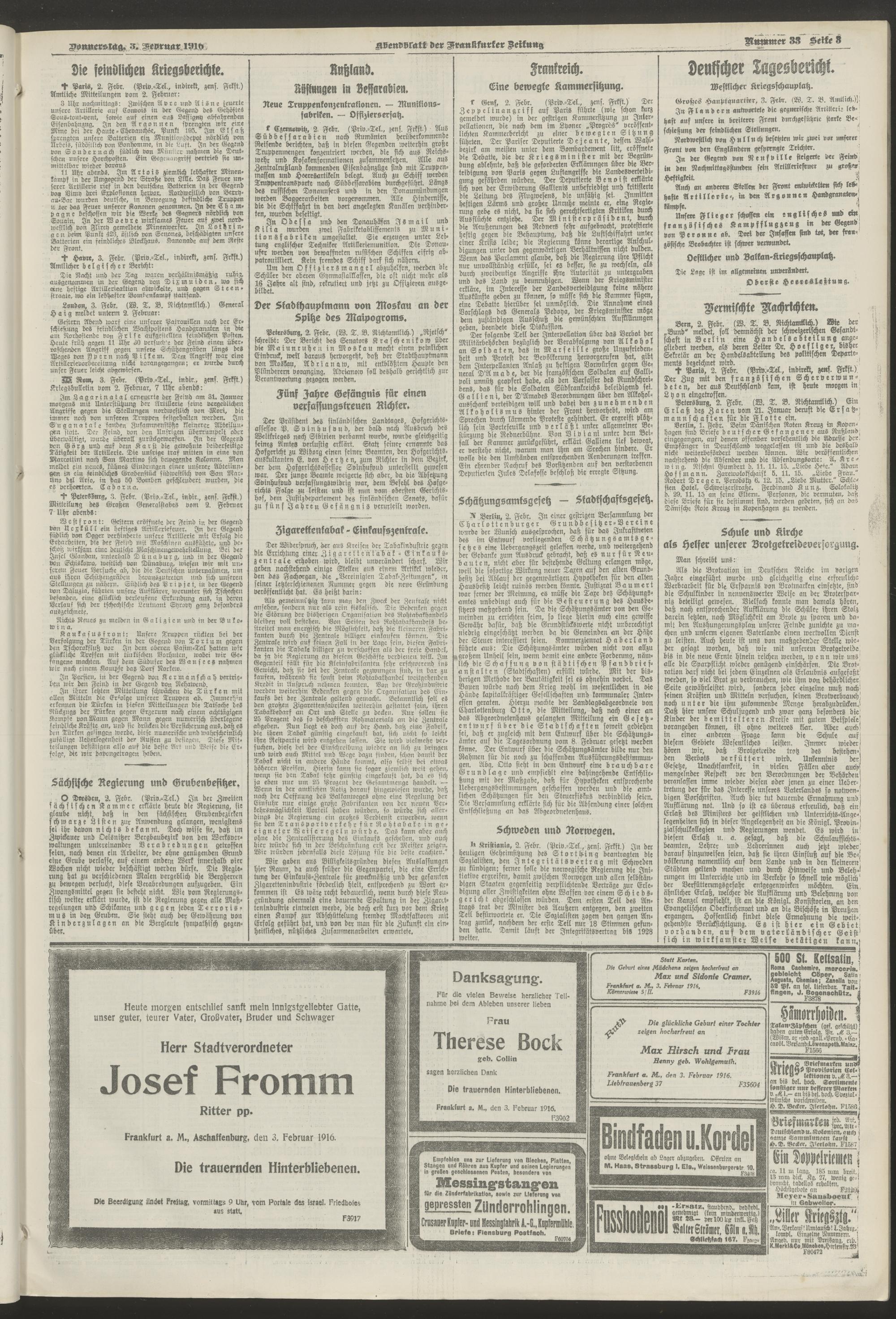 03.02.1916 = Nr. 33. Abendblatt