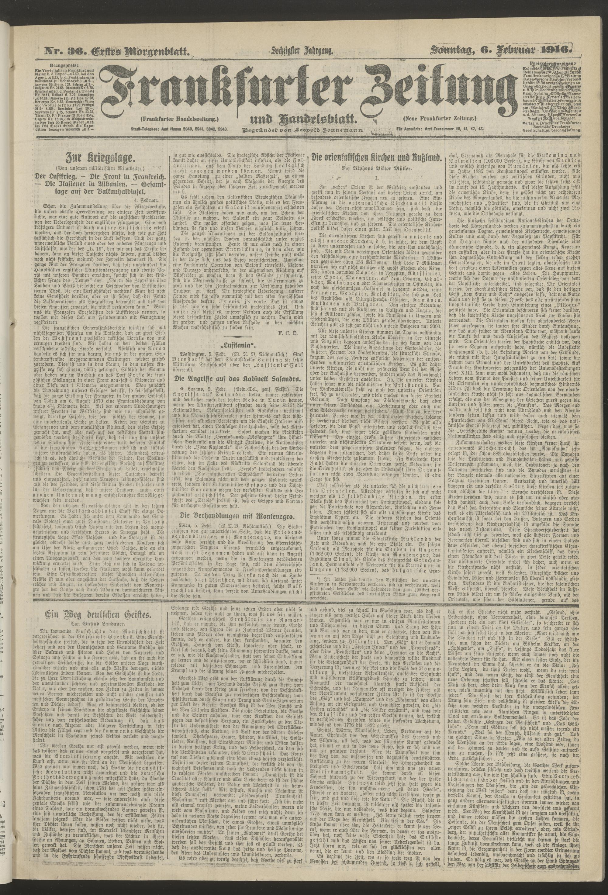 06.02.1916 = Nr. 36. Erstes Morgenblatt