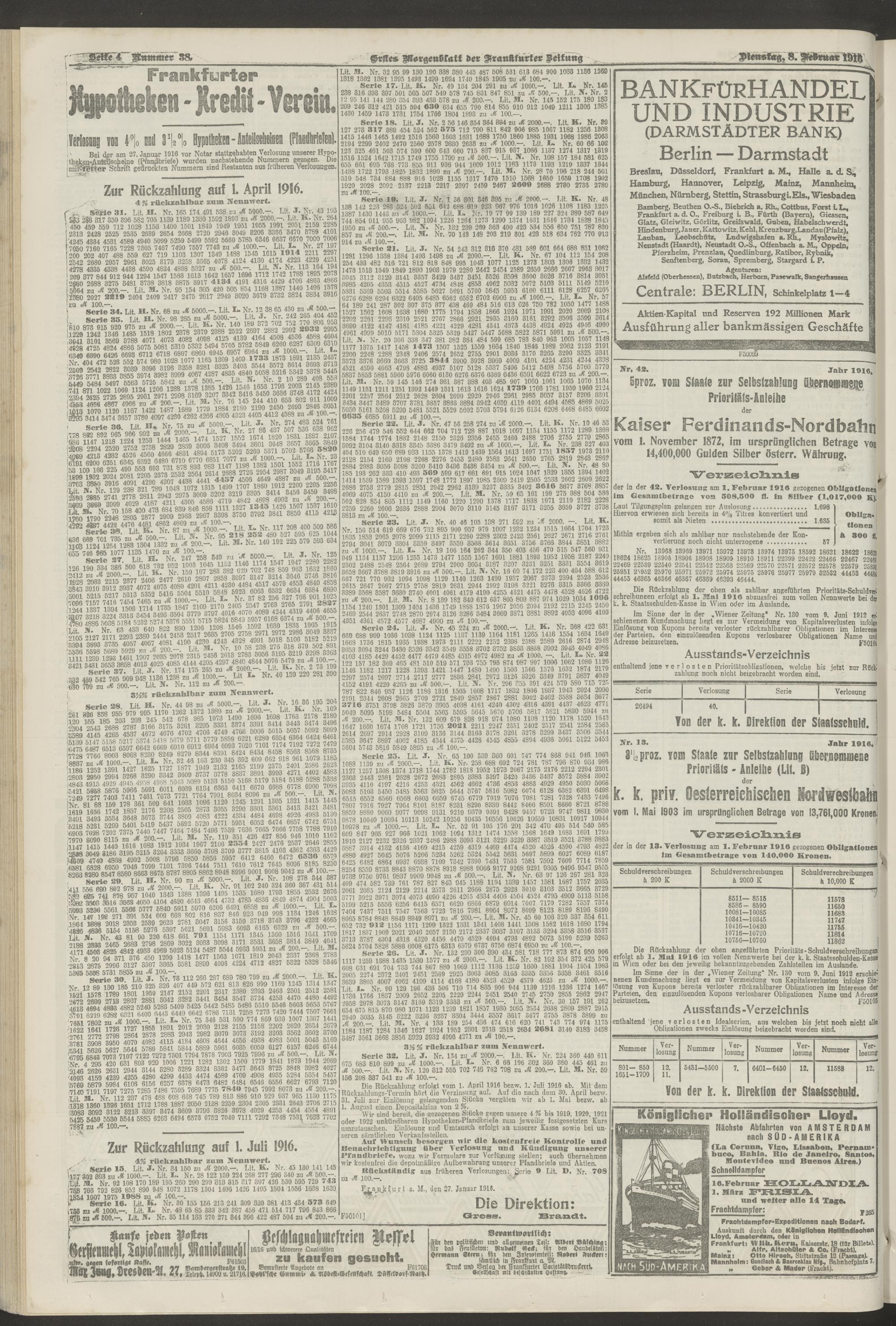 08.02.1916 = Nr. 38. Erstes Morgenblatt